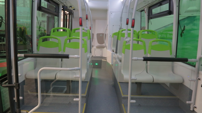 Это 10-метровый гибридный автобус Vectia Teris 10 и самую свежую новинку – 12-метровую чисто электрическую модель Vectia Veris 12. Последняя может подзаряжаться на кратковременных остановках при помощи суперконденсаторов – через пантограф на крыше.