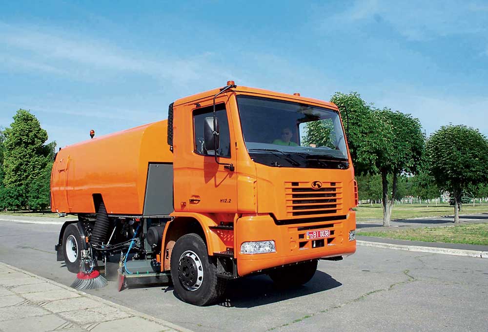 Очередная новинка для городских служб Украины – вакуумный подметально-уборочный автомобиль КрАЗ К12.2 со спецоборудованием City Fant 60, созданный совместно с компанией «Глобус-авто» (г. Одесса). В основе машины лежит двухосное бескапотное шасси КрАЗ Н12.2. Автомобиль оснащен новым рядным 6-цилиндровым турбодизелем ЯМЗ-536 (Eвро 4) мощностью 312 л. с. c системой рециркуляции выхлопных газов (EGR) и 9-ступенчатой коробкой передач Fast Gear 9JS150ТА. Специальное оборудование City Fant 60 производства немецкой компании Bucher-Schrling состоит из мусороприемного бункера объемом 6 м куб., бака для воды на 1500 л, подметального устройства и устройства подбора мусора, системы пылегашения и увлажнения при уборке. Имеется также оборудование для ручной уборки мусора в труднодоступных местах, а также для мойки дорожных знаков, остановок общественного транспорта и др.