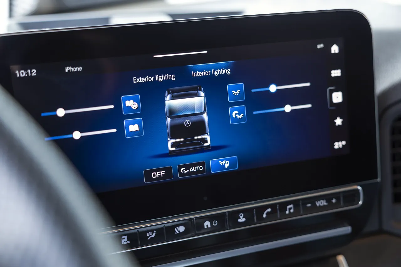 Для обоих типов кабин в стандартное оснащение входит система камер Mirror Cam вместо традиционных наружных зеркал, которая эффективно взаимодействует с системой обнаружения пешеходов и велосипедистов в слепых зонах – Active Sideguard Assist 2. Комплектация также включает и продвинутую цифровую приборную панель Multimedia Cockpit Interactive 2.