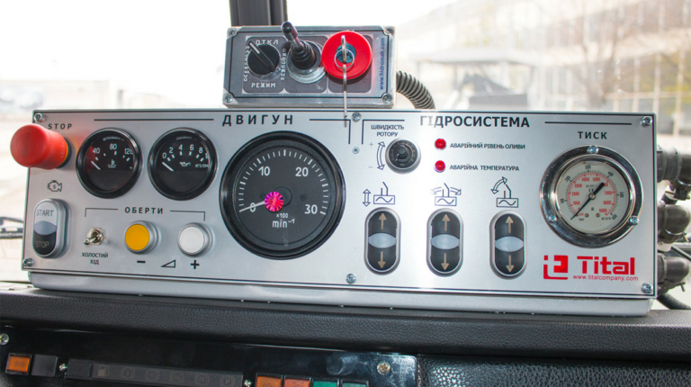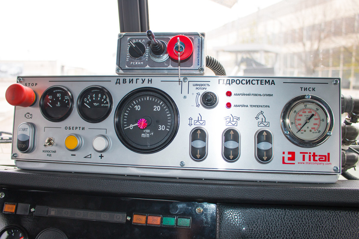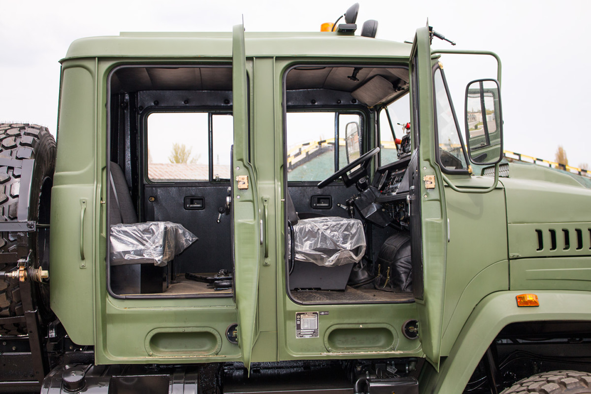 Появились новые технические подробности супер КрАЗа. В разработке и постройке машины принимала участие известный украинский производитель пожарных автомобилей компания Tital. Так, весьма сложный пульт управления шнекороторной установкой носит логотип Tital. Последний установлен в двухрядной 4-верной кабине, которая позволяет перевозить до шести человек.