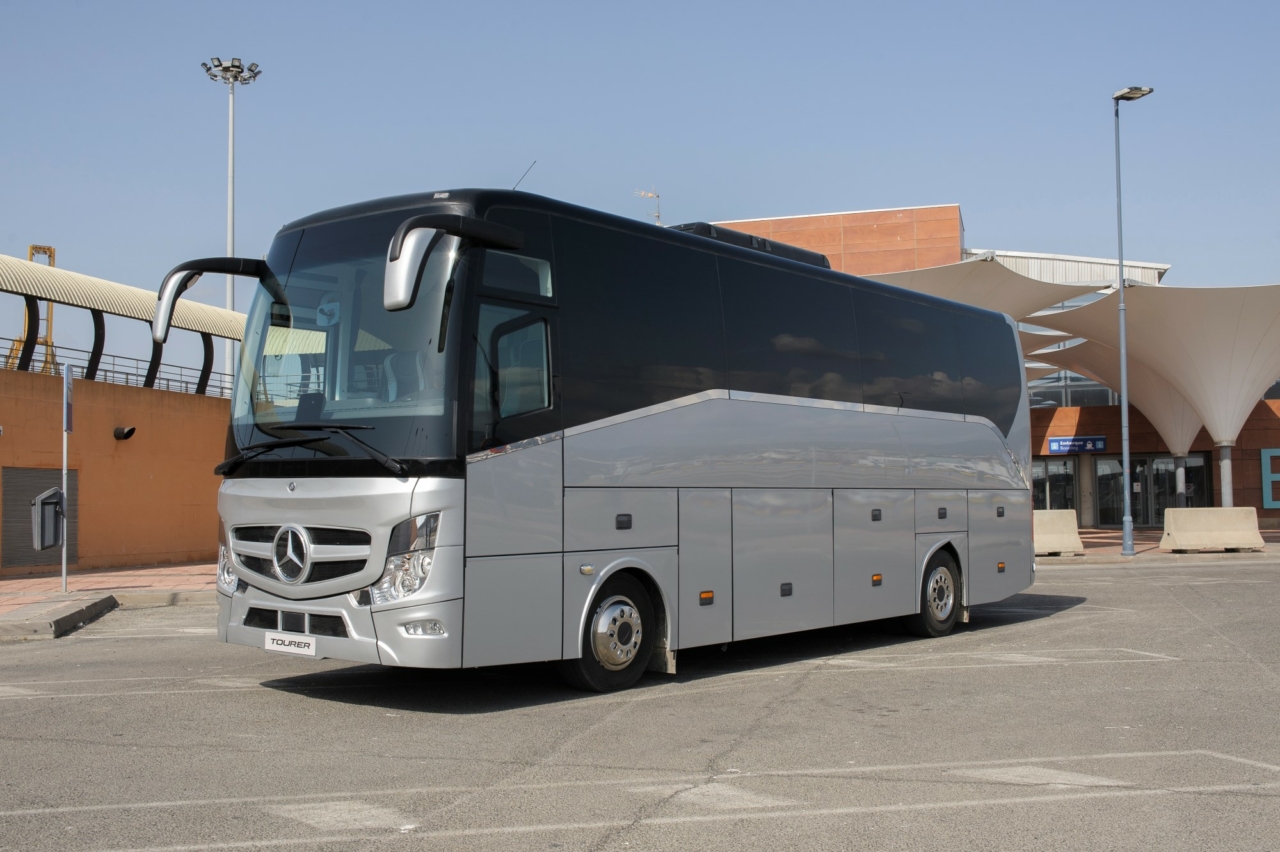 Tourer HD получил узнаваемый дизайн в стиле полноразмерного лайнера Mercedes-Benz Travego – массивную решетку радиатора с трехлучевой звездой и изогнутые фары в виде бумеранга.