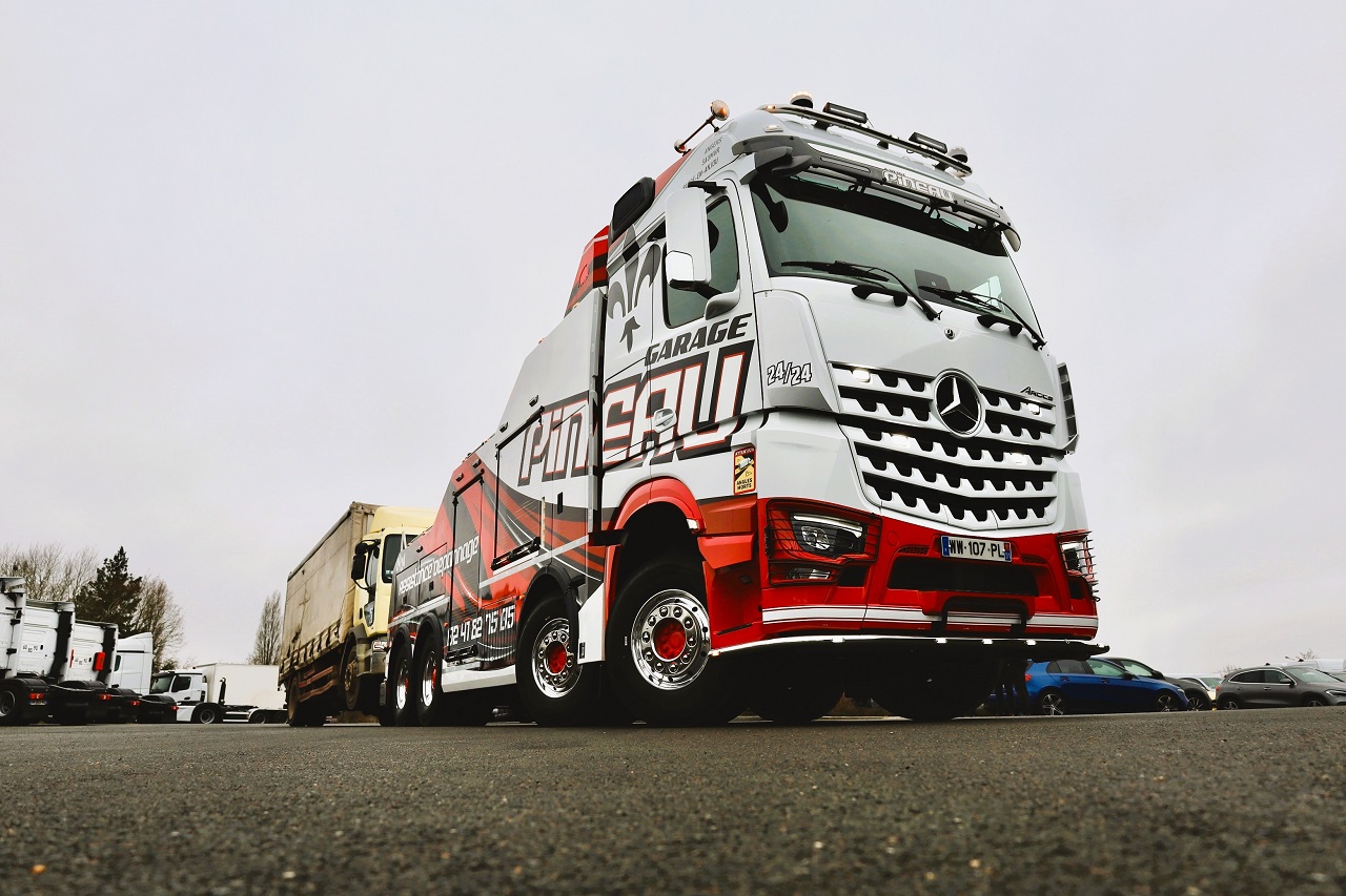 Автопарк большегрузных эвакуаторов компании Pineau из Боже-ан-Анжу (Франция) пополнился мощным Mercedes-Benz Arocs 4163 (8×4). На шасси с кабиной Big Space установлена надстройка от венгерского кузовного производителя GTS (Global Towing System), который недавно вышел на французский рынок.