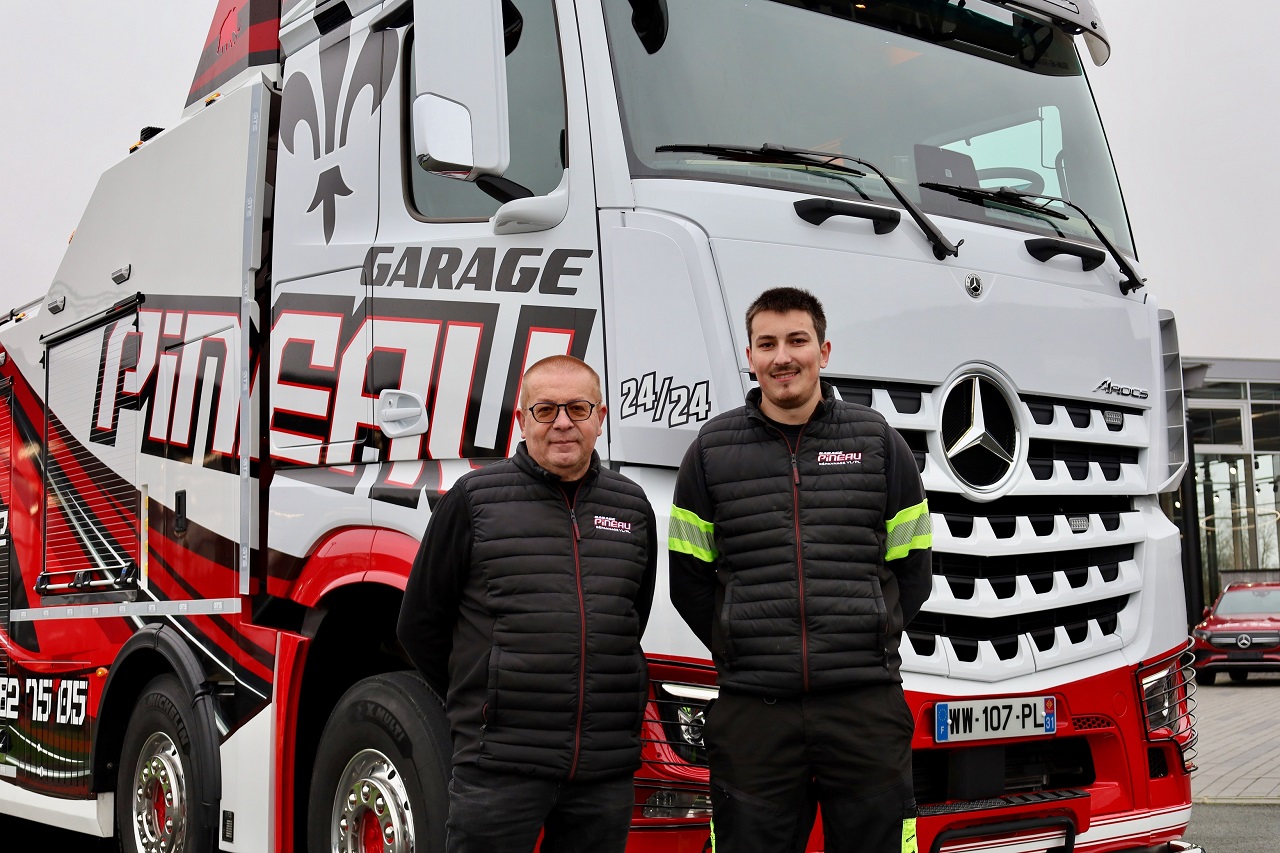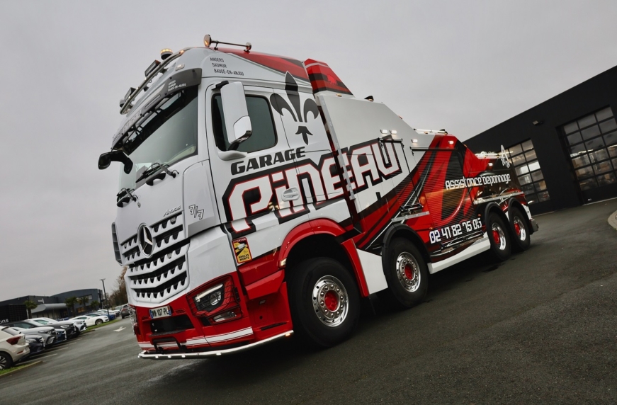 Компания Pineau была основана в 1973 году Кристофом Пино и на протяжении многих лет специализировалась на услугах по эвакуации большегрузных автомобилей. Сегодня он управляет компанией вместе со своим сыном Мавериком. Автопарк Pineau насчитывает около 15 автомобилей, включая четыре большегрузных тягача. Arocs 4163 — первый грузовик Mercedes-Benz в истории компании.