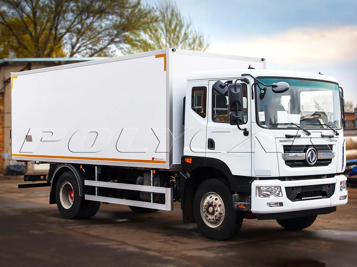 Одной их самых популярных кузовных надстроек для развозных автомобилей является промтоварный фургон, который оптимально защищает груз от непогоды и кражи. Так вот, на украинском рынке такой техники появилось новое предложение – среднетоннажное шасси Dongfeng Captain D9, оборудованное таким кузовом марки Polycar.