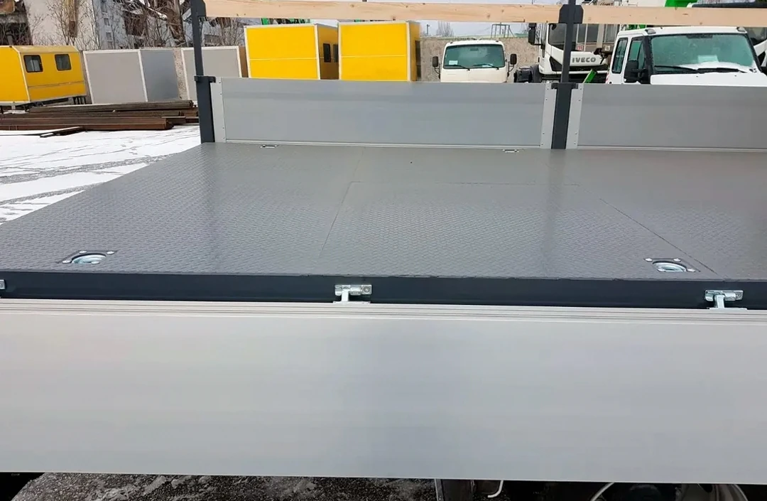 Пол изготовлен из рифленого стального листа и снабжен крепежными проушинами, размещенными в специальных углублениях, чтобы не мешали. Центральные стойки сделаны съемными, а борта имеют «секретные» замки. Шасси рассчитано на полную массу 12 т, а грузоподъемность бортового автомобиля составляет 6 т. Машина укомплектована 5,9-литровым турбодизелем Tector мощностью 218 л. с.