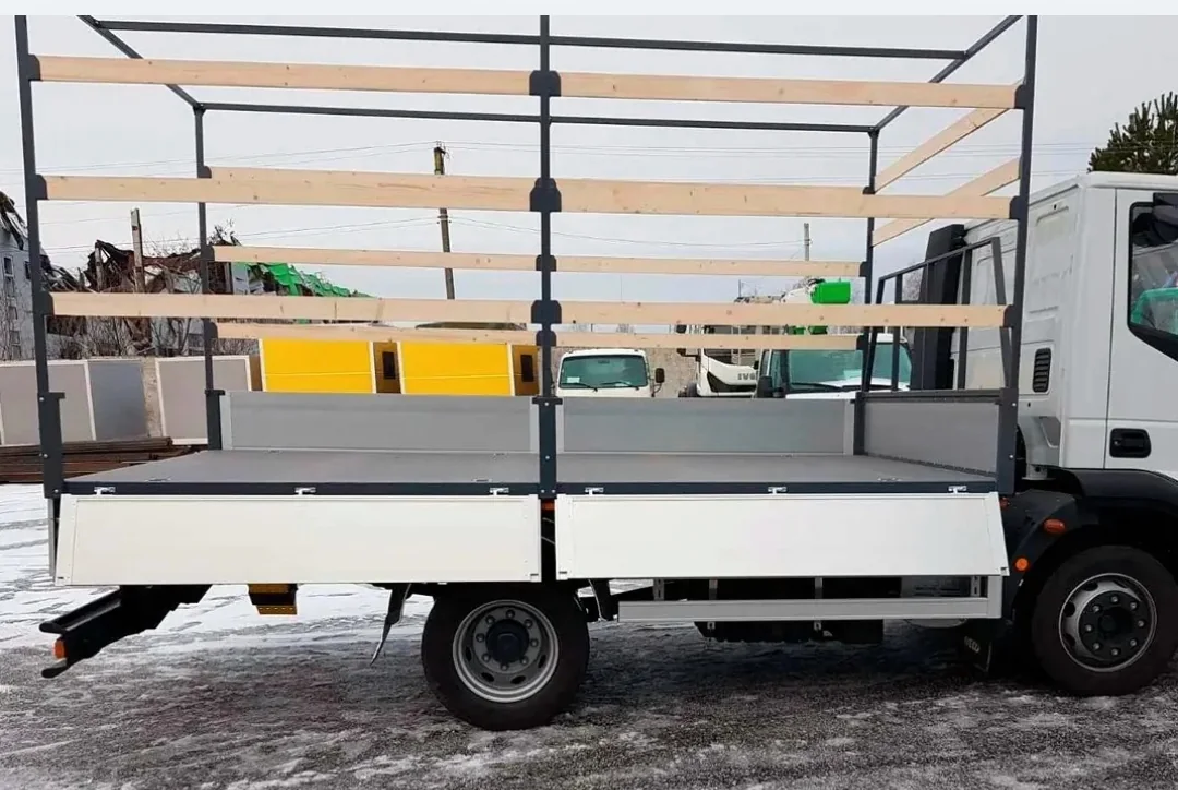 А на днях «Техкомплект» снова приятно удивил, оснастив бортовой тентованной платформой шасси IVECO EuroCargo ML 120E22. Данная модель представлена в короткобазном исполнении, что делает ее довольно маневренной при езде по городу. Здесь установлена тентованная платформа длиной 4500 мм и шириной 2450 мм. Высота алюминиевых бортов составляет 400 мм. Полезный объем кузова с тентом достигает 24 кубометра.
