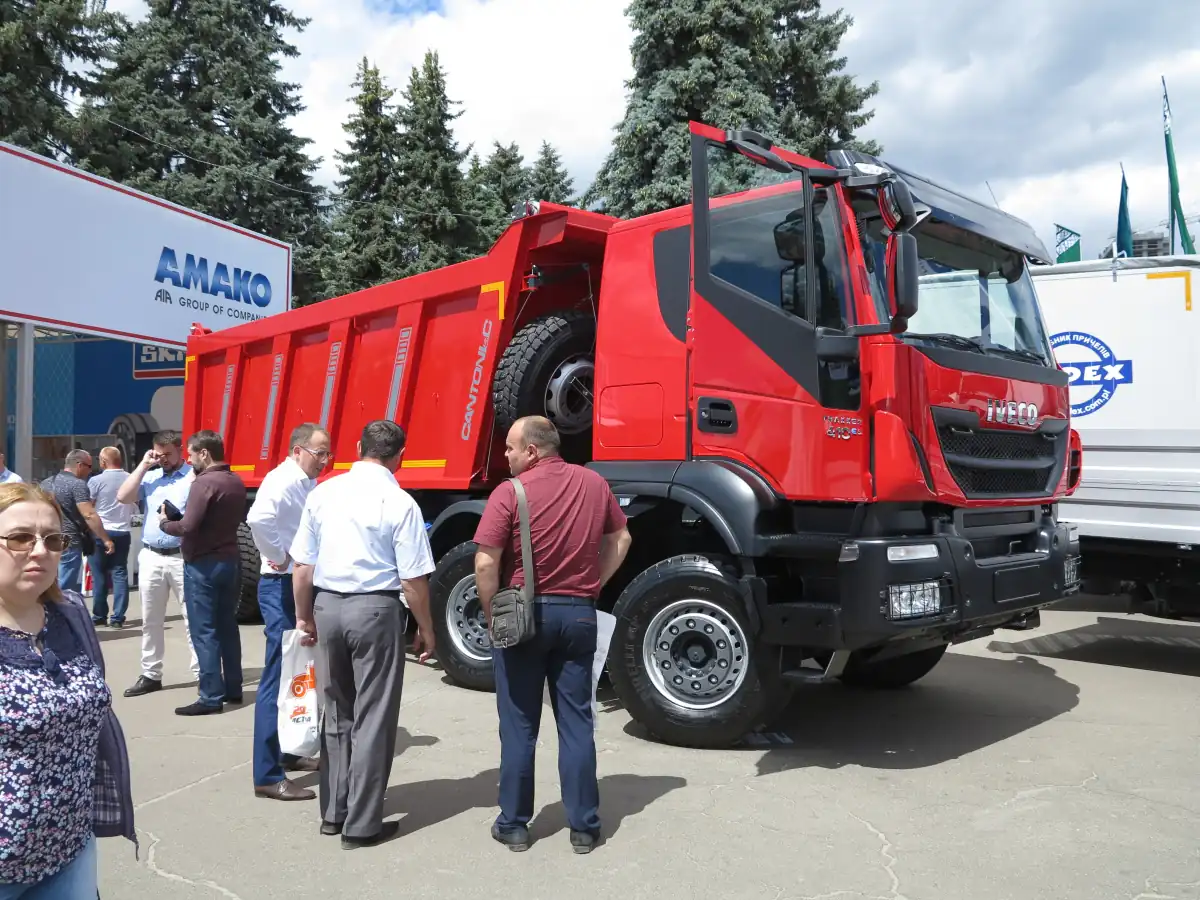 На стенде АМАКО привлекал внимания и ярко-красный самосвал IVECO Trakker с колесной формулой 8х4. Машина была представлена с кузовом известного итальянского производителя Cantoni.