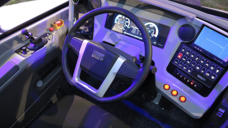 Рабочее место водителя отличается повышенным комфортом . Оно полностью изолировано от основного салона, здесь регулируемая рулевая колонка, цифровая приборная панель, электрорегулируемые наружные зеркала, камера заднего обзора, система мониторинга давления в шинах и многое другое.