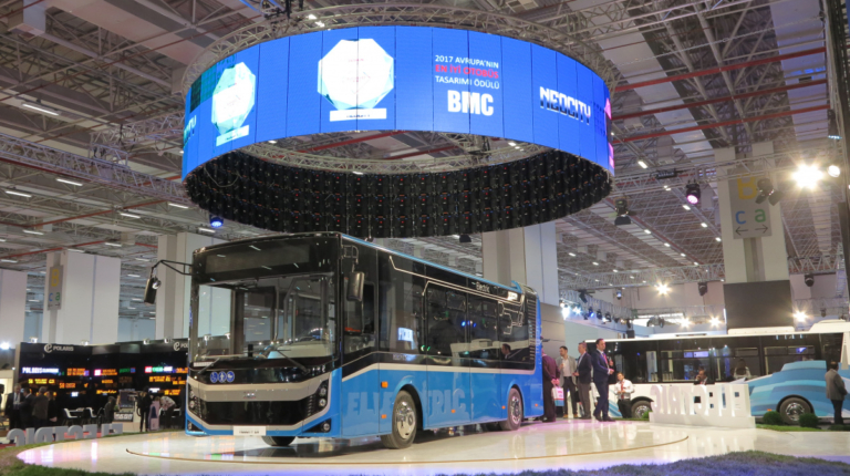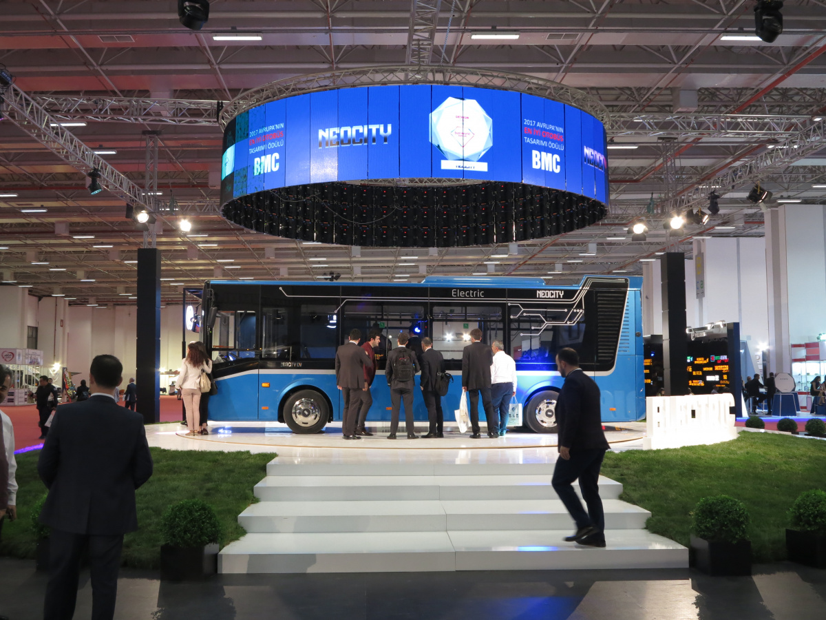 Одной из главных событий выставки прошло на стенде турецкого производителя автобусов BMC Otomotiv Sanayi Ve Ticaret A.S. Это была самая большая экспозиция – площадью 3678 кв. Здесь посетителя было представлено 10 городских автобусов нового поколения, как с дизельными двигателями Евро 6, так с моторами на природном газе (CNG).