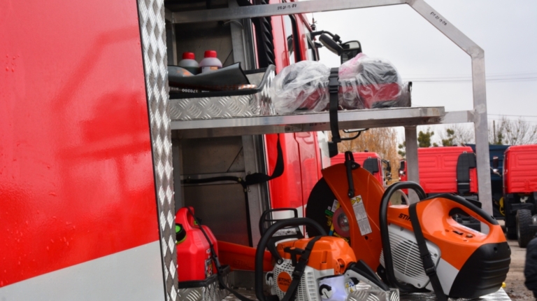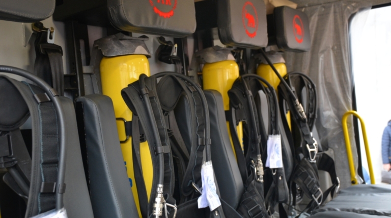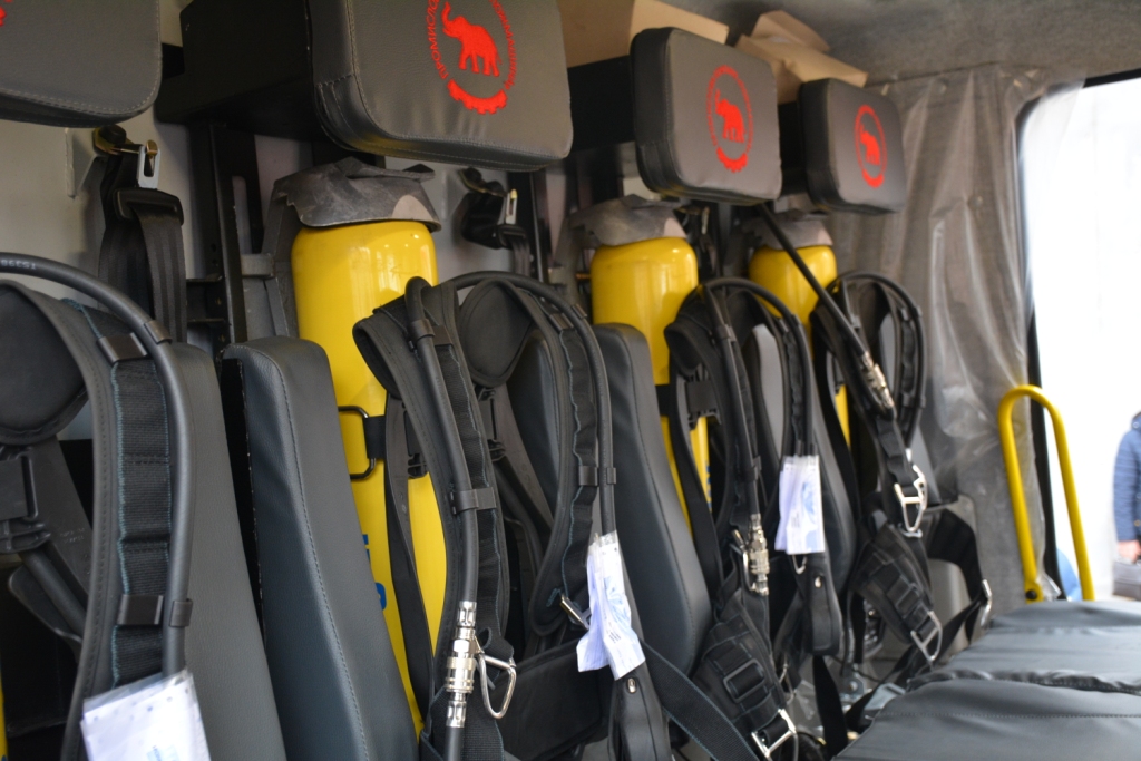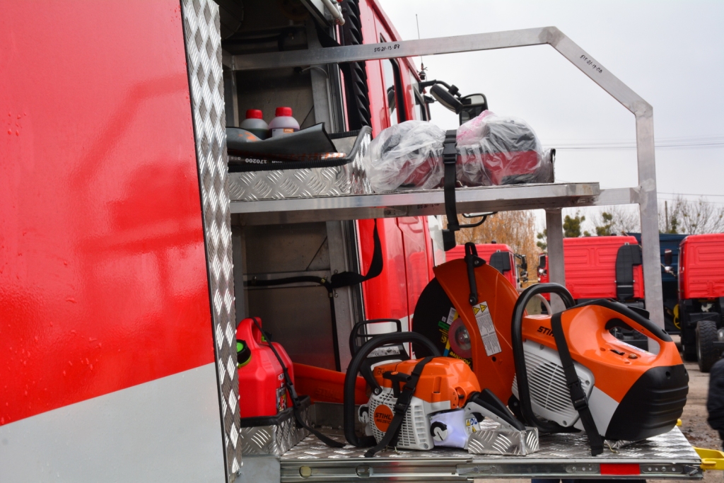Из дополнительного оборудования следует отметить 4 дыхательных аппарата со сжатым воздухом Drager PSS 4000, 16 масок, бензопилу и бензорез марки Stihl, а также американские групповые фонари, лом и штурмовой пожарный топор. Автоцистерна оснащена мощной осветительной мачтой, а также генератором на 5 кВт.