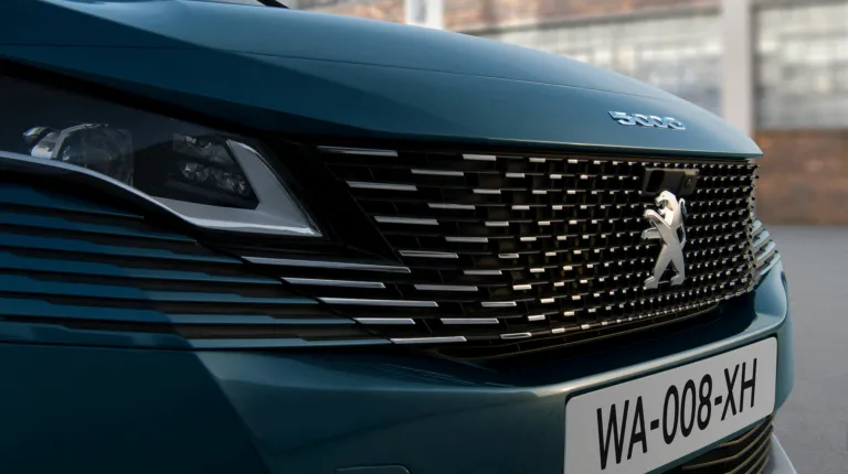 Кроссовер Пежо 5008 обновился по той же схеме, что и его младший брат. Он получил безрамную решетку радиатора с трехмерным рисунком, новую светодиодную оптику, ДХО в стиле «клыков льва», модернизированные бамперы и 19-дюймовые колесные диски. Цветовая гамма кузова теперь включает следующие оттенки: Celebes Blue, Metallic Copper, Pearl White, Artense Grey, Platinum Grey, Perla Nera Black и Ultimate Red.