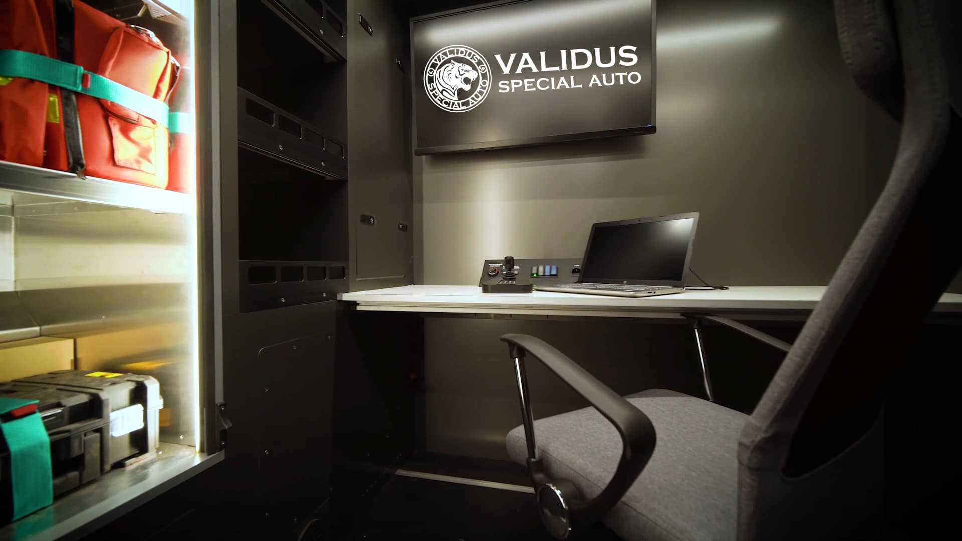 На крыше кузова-фургона смонтирована беспроводная видеокамера с углом обзора 360 град. Внутри также есть крепления для средств индивидуальной защиты органов дыхания. В комплектацию входит выдвижная осветительная мачта и сигнально-громкоговорящее устройство.