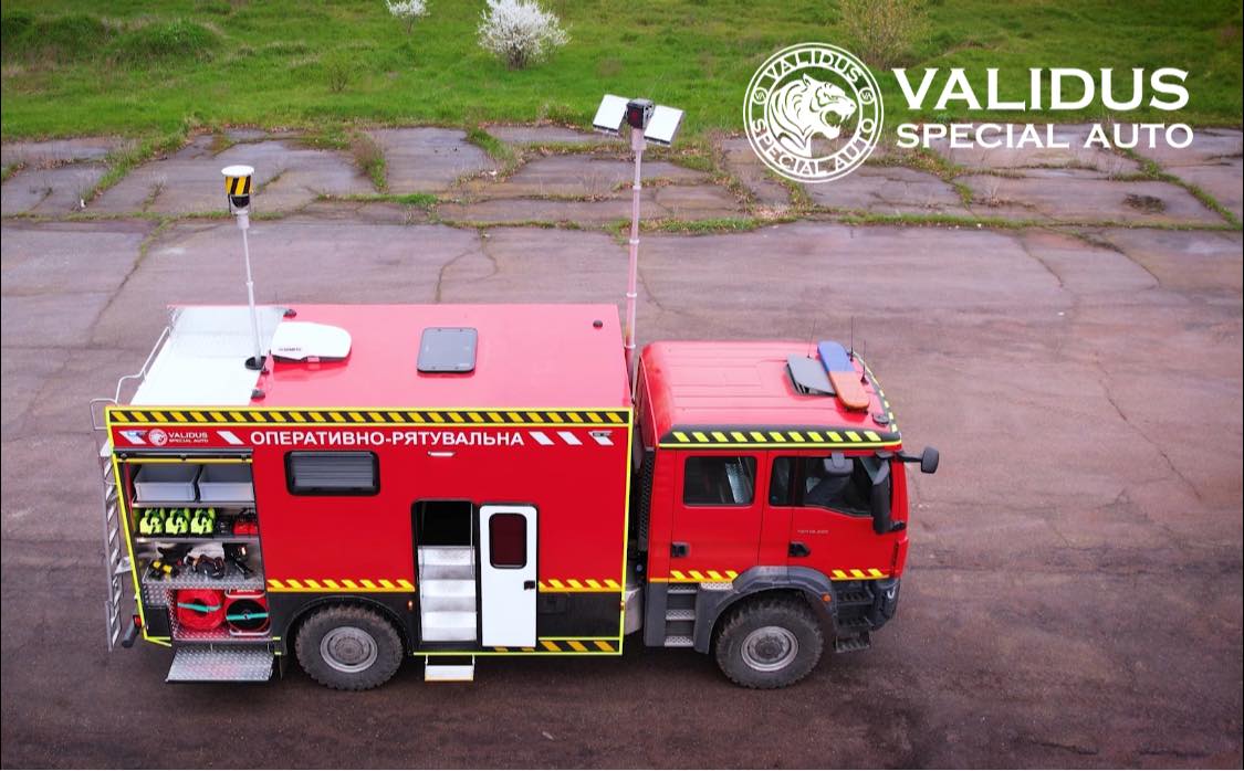 Отечественная компания Validus Special Auto изготовила для одного из украинских аэропортов аварийно-спасательную машину САРМ-В. Базой послужило полноприводное шасси MAN TGM 18.320 (4х4) с односкатной задней ошиновкой и трехсекционным стальным бампером. Кабина применяется двухрядная.