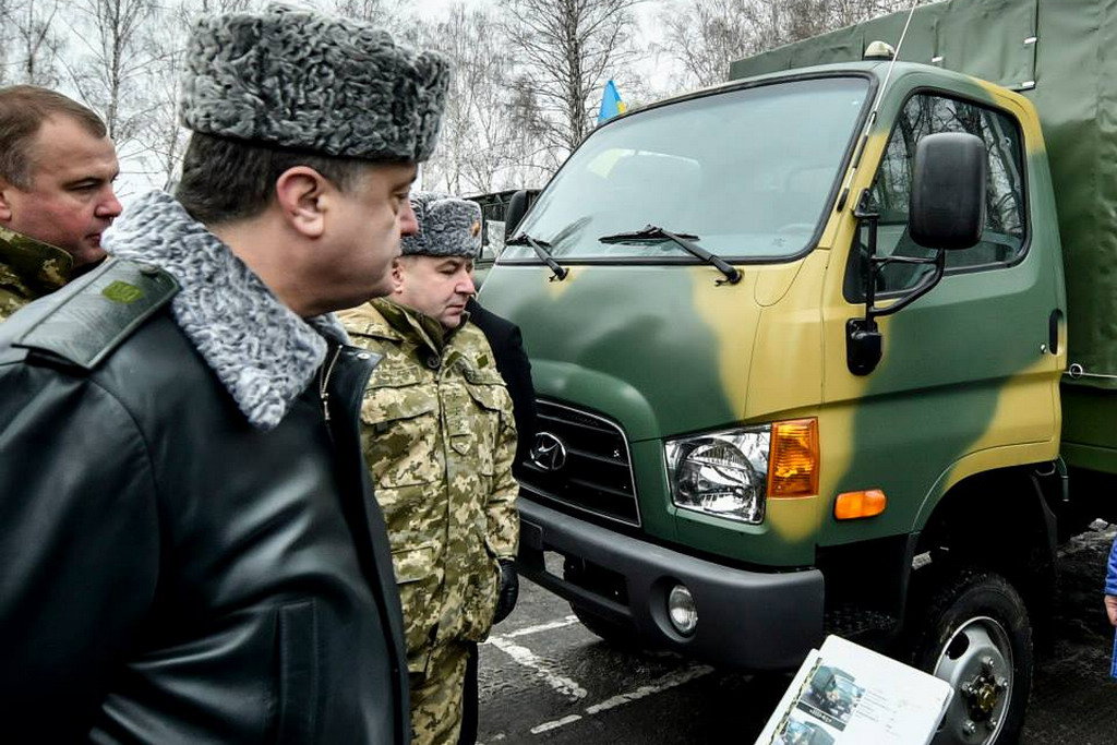 Петр Порошенко осмотрел армейские автомобили Kia и Hyundai (ВИДЕО)