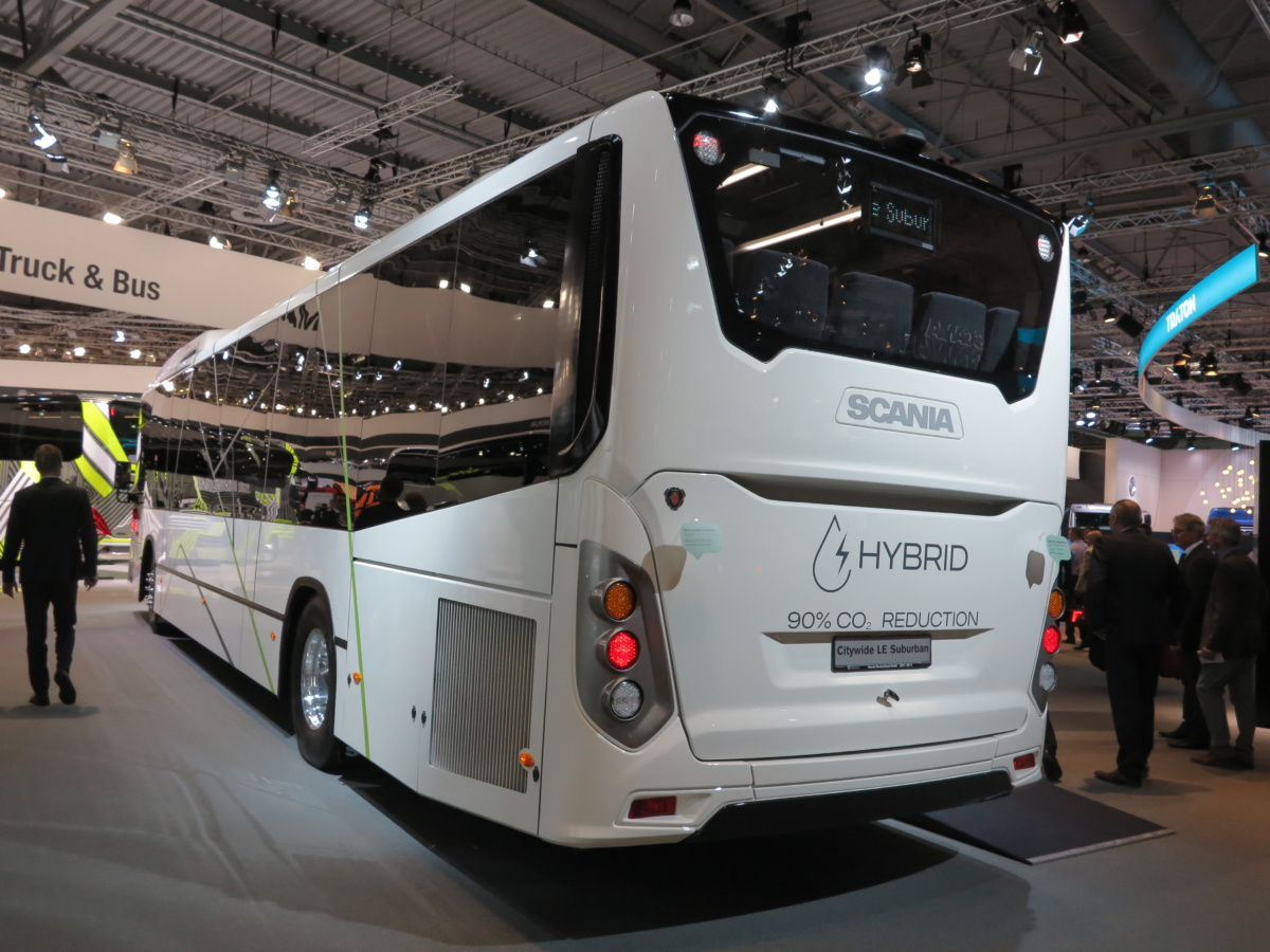 На выставке IAA 2018 в Ганновере Scania также показала низкопольный пригородный автобус Сitywide LE с гибридной силовой установкой HVO. Здесь уставлен 320-сильный 9,0-литровый двигатель, который рассчитан на работу на биодизеле или на биотопливе на основе растительного масла (из рапса и др.) под названием HVO. В итоге выбросы углекислого газа СО2 cнижаются на 90%. Машина имеет длину 13 м, ширину 2,55 и высоту 3,4 м. В салоне – 41 место для сидения.