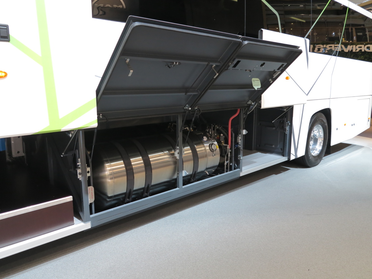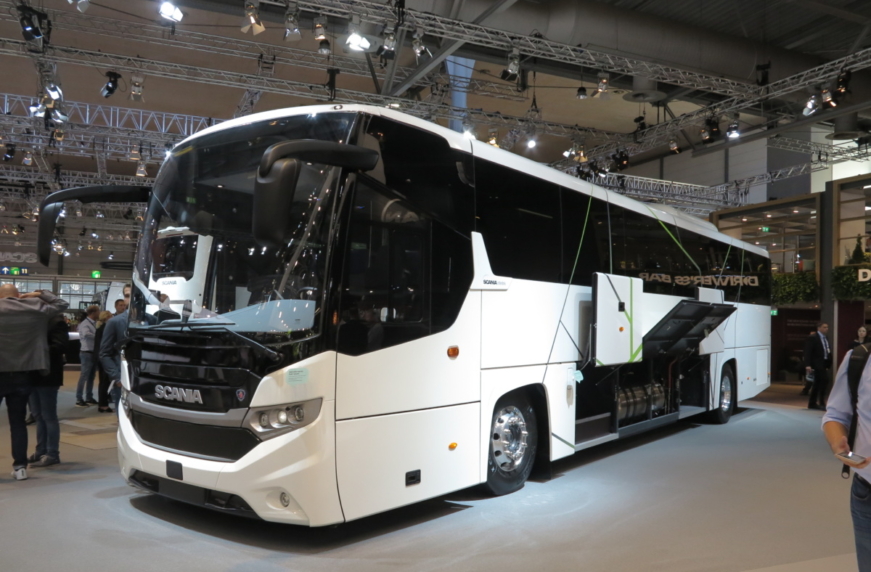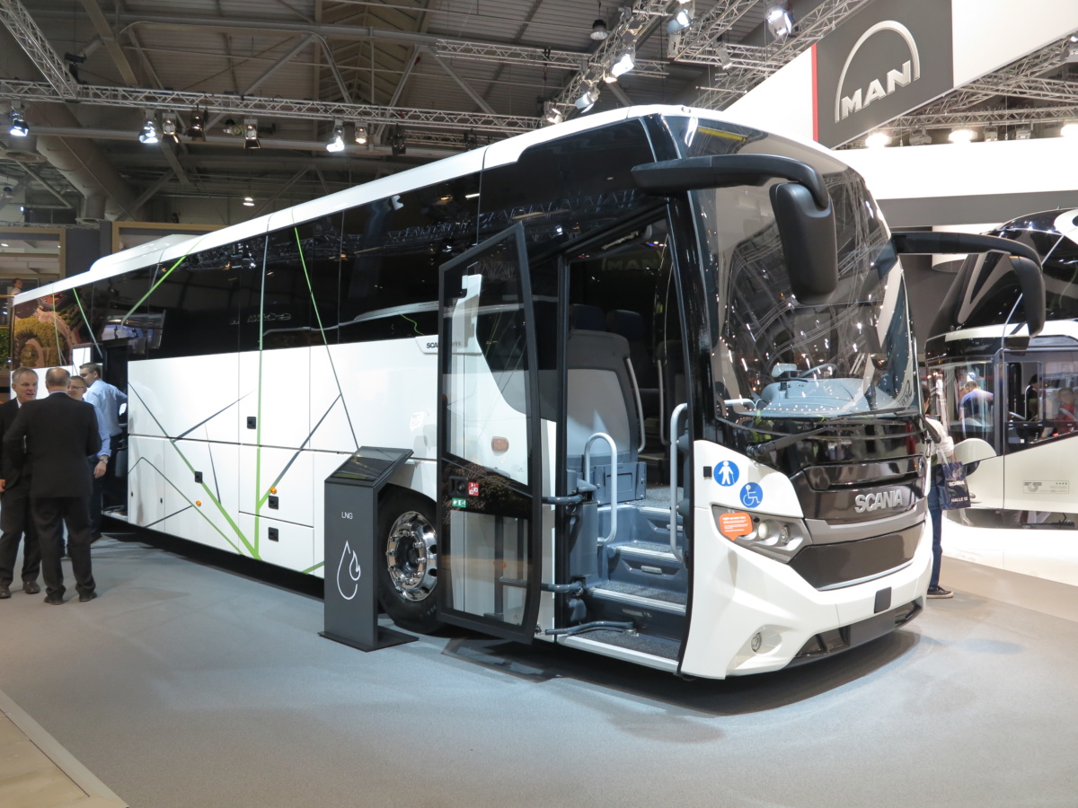 Компания Scania представила первый в мире серийный междугородный автобус, работающий на газе – модель Interlink Medium Decker. Причем это может быть как сжиженный природный (LNG), так с сжиженный биогаз (LBG). Машина способна проехать без дозаправки до 1000 км.