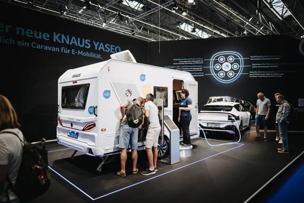 На выставке караванинга Caravan Salon 2023 в Дюссельдорфе на стенде компании Knaus состоялась мировая премьера кемпера Yaseo. Этот жилой прицеп идеально подходит для электромобилей. Особенно машин с технологией Vehicle-2-Load для питания различного оборудования прицепа: индукционной плиты, кондиционера и холодильника. На выставке новинка стояла в паре с кроссовером Kia EV6, получившим почетный титул Сar of the Year 2022.