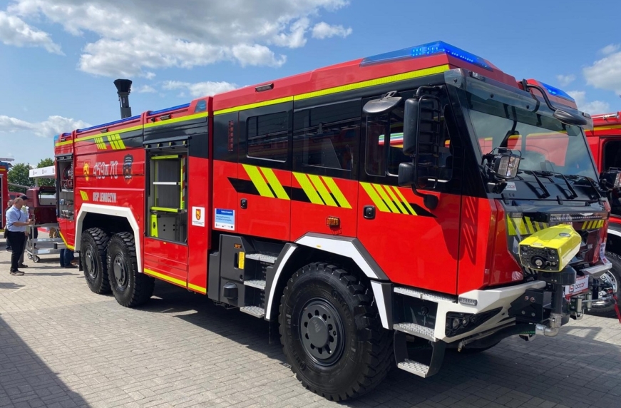 На выставке IFRE Expo 2025 в польском городе Кельце состоялась премьера пожарной автоцистерны на шасси Tatra Force (6х6) с двухрядной кабиной, рассчитанной на 1+1+4 места. Кузовная надстройка, в которой находится резервуар для 8000 л воды, изготовлена польской специализированной компанией Bocar. Автомобиль оснащен турбодизелем Cummins cтандарта Евро 6 и автоматической коробкой передач Allison.