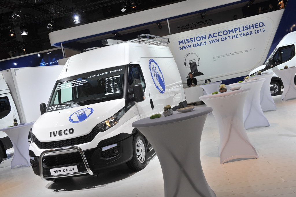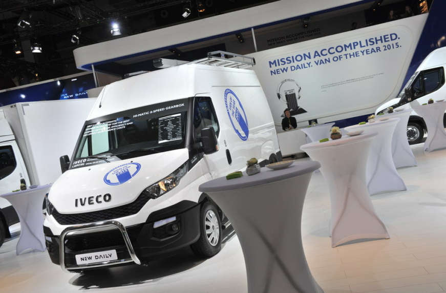 На Брюссельском автосалоне, проходящем с 16 по 25 января, стенд Iveco занимает солидную площадь – свыше 1000 м кв. Гвоздем экспозиции стал развозной автомобиль Iveco New Daily, завоевавший почетный титул «Фургон 2015 года». Однако и здесь не обошлось без премьер: титулованный фургон впервые на международной публике предстал с новой, 8-ступенчатой коробкой передач Hi-Matic. Данная трансмиссия отличается не только быстродействием (передачи включаются за 200 миллисекунд), но и экономичностью – расходы на обслуживание снижены на 10%, по сравнению с механической трансмиссией.