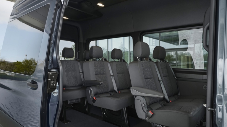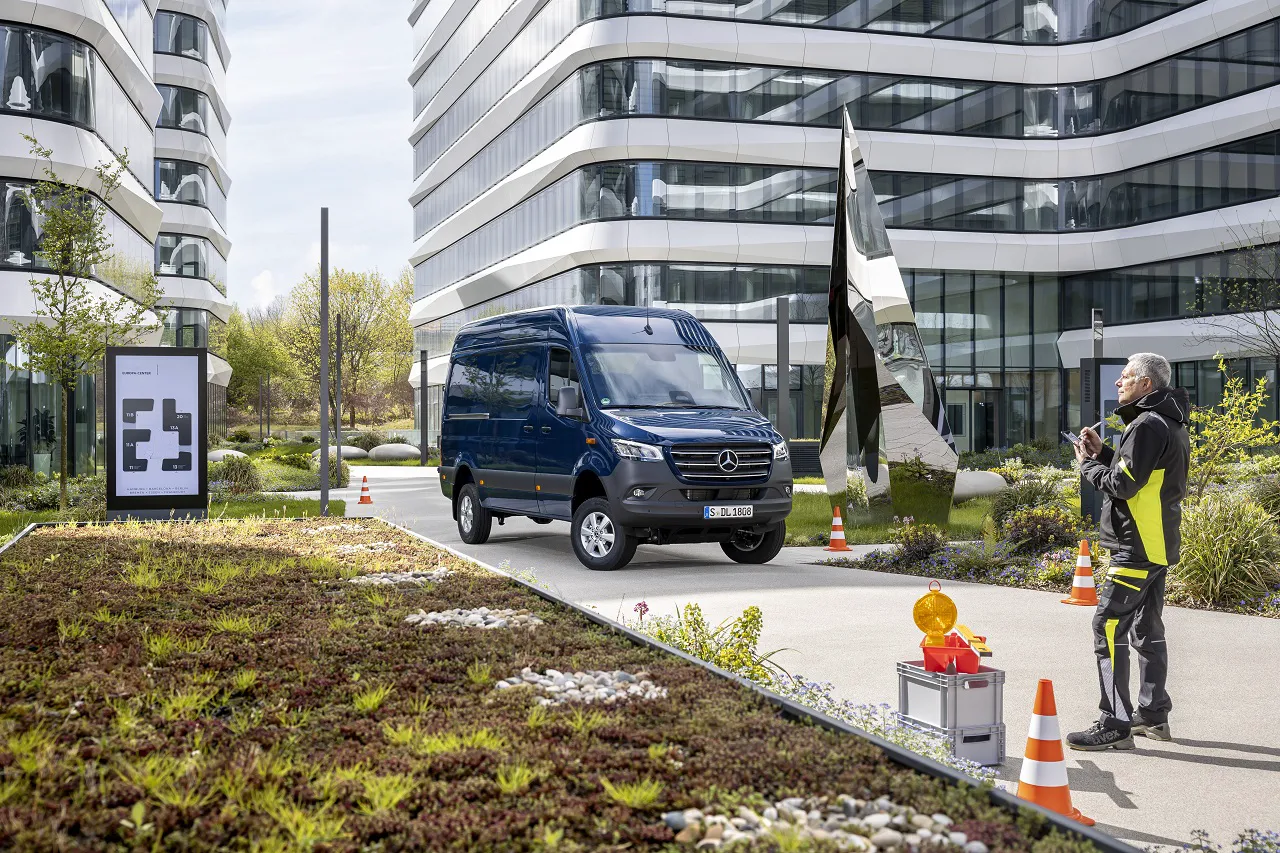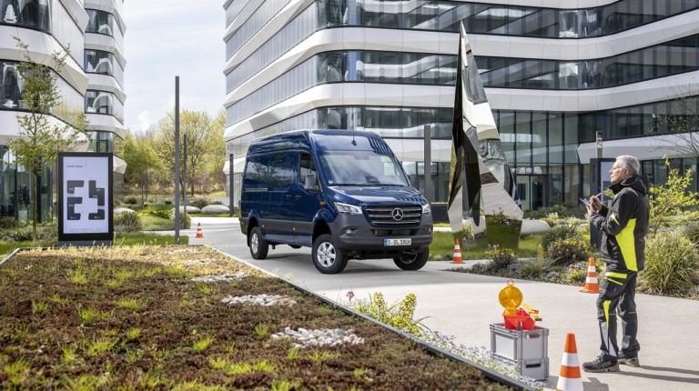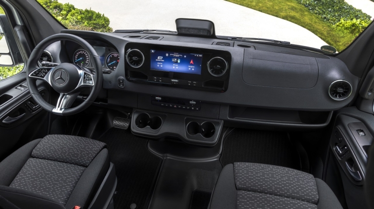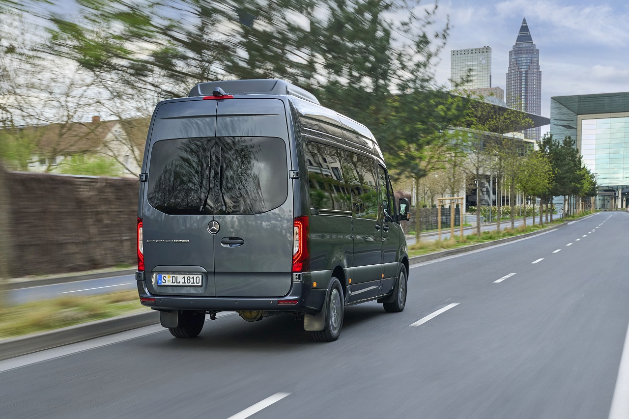 Развозная модель побольше – Sprinter/eSprinter рассчитана на полную массу до 5,5 т. Она является флагманом портфолио – с долей 50%. Предлагается как фургон, бортовой автомобиль, шасси и микроавтобус Tourer. Автомобиль доступен с тремя исполнениями по длине, а также задним, передним или полным приводом. Отметим, что около 75% всех выпущенных автомобилей модифицируется специализированными фирмами под индивидуальные задачи.