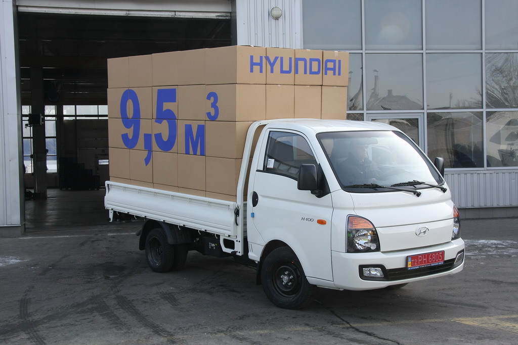 На тест-драйв мы взяли классическую модификацию Hyundai H100 – с бортовой платформой. Номинальная грузоподъемность автомобиля – 1420 кг, хотя крепкие рама и подвеска колес допускают работу с полуторократным перегрузом. Интересная особенность – колеса разного размера: передние – 15-дюймовый, задние – 13-дюймовые. Кабина трехместная, но троим пассажирам в зимней одежде в ней тесновато. На автомобилях H100, поставляеміх в Украину, устанавливается турбодизельній двигатель, рабочим объемом 2,5 л, с системой впрыска Common Rail, развивающий 130 л.с. Именно последний был установлен на нашем подопечном. На ходу он проявил себя тяговитым и эластичным. Шестиступенчатая коробка передач порадовала легкостью переключения. При езде по городу Hyundai H100 «кушает» около 11 л солярки. Цена машины стартует со 180 тыс. грн.