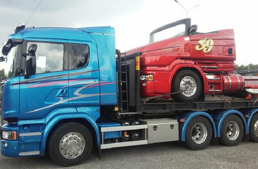Известный шведский мастер в области тюнинга грузовых автомобилей – Свемпа Бергендаль несколько лет назад удивил мир своей новой разработкой – открытым хот-родом R999 под названием «Красная жемчужина». Базой для машины послужил списанный капотный седельный тягач Scania T500. Было решено сделать из грузовика что-то необычное. Работы началась в 2005 году. Автомобиль перебрали до винтика, а затем передали на фирму Laxa Special Vehicles, занимающуюся изготовлением спецкузовов на шасси грузовиков Scania. Здесь, согласно эскизам, и был построен хот-род R999 «Красная жемчужина». На все про все ушло свыше 5000 рабочих человеко-часов.