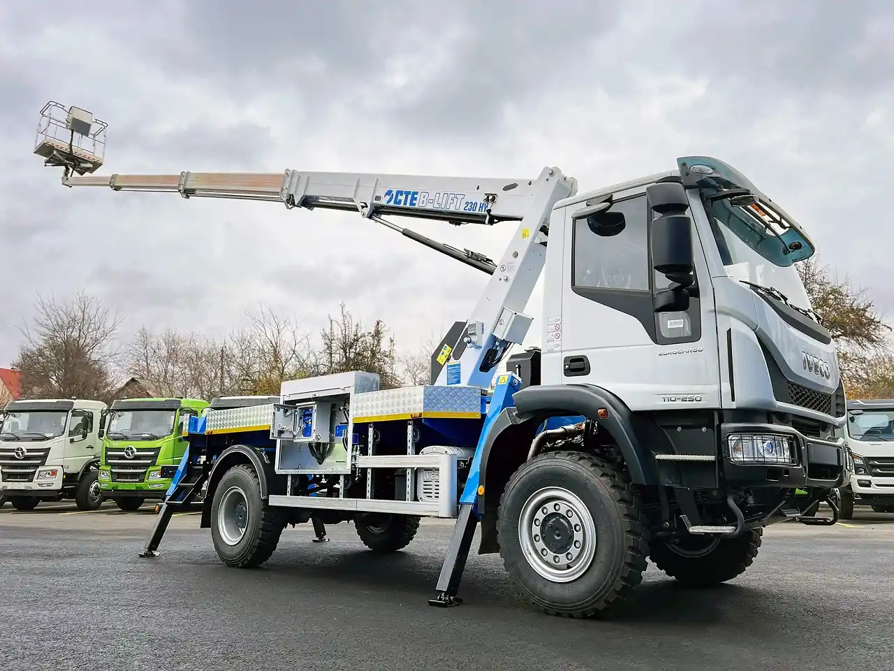 Кременчугский Завод коммунальной техники «Альфатекс» на днях передал клиенту очередную свою новинку. Это мощный автогидроподъемник CTE B-Lift 230HY, установленный на полноприводном шасси IVECO Eurocargo ML110E25WS (4x4).