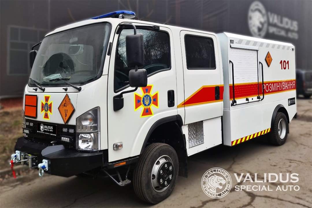 Известный украинский производитель аварийно-спасательных машин – компания «Валидус Спецавто» всего за пять дней сумела выполнить очень важный для военного времени заказ. Это три специальных автомобиля, которые уже отправились на помощь в Киев, Черкассы и Днепр. Среди них в первую очередь стоит отметить машину для пиротехнических работ – разминирования и перевозки взрывоопасных материалов. Это первый бронированный продукт компании.