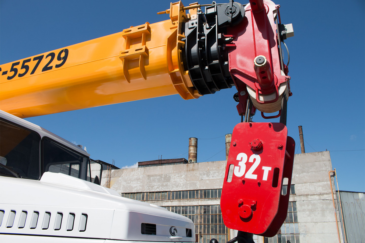 Крановая установка комплектуется стрелой на 30 метров, с углом поворота 360 градусов и максимальной грузоподъемностью 32 т. Использование полноприводного шасси КрАЗ-63221 с колесной формулой 6х6 позволяет эксплуатировать автокран и на плохих дорогах вне населенных пунктах. Для улучшения обзорности шасси оснащено камерой заднего вида.