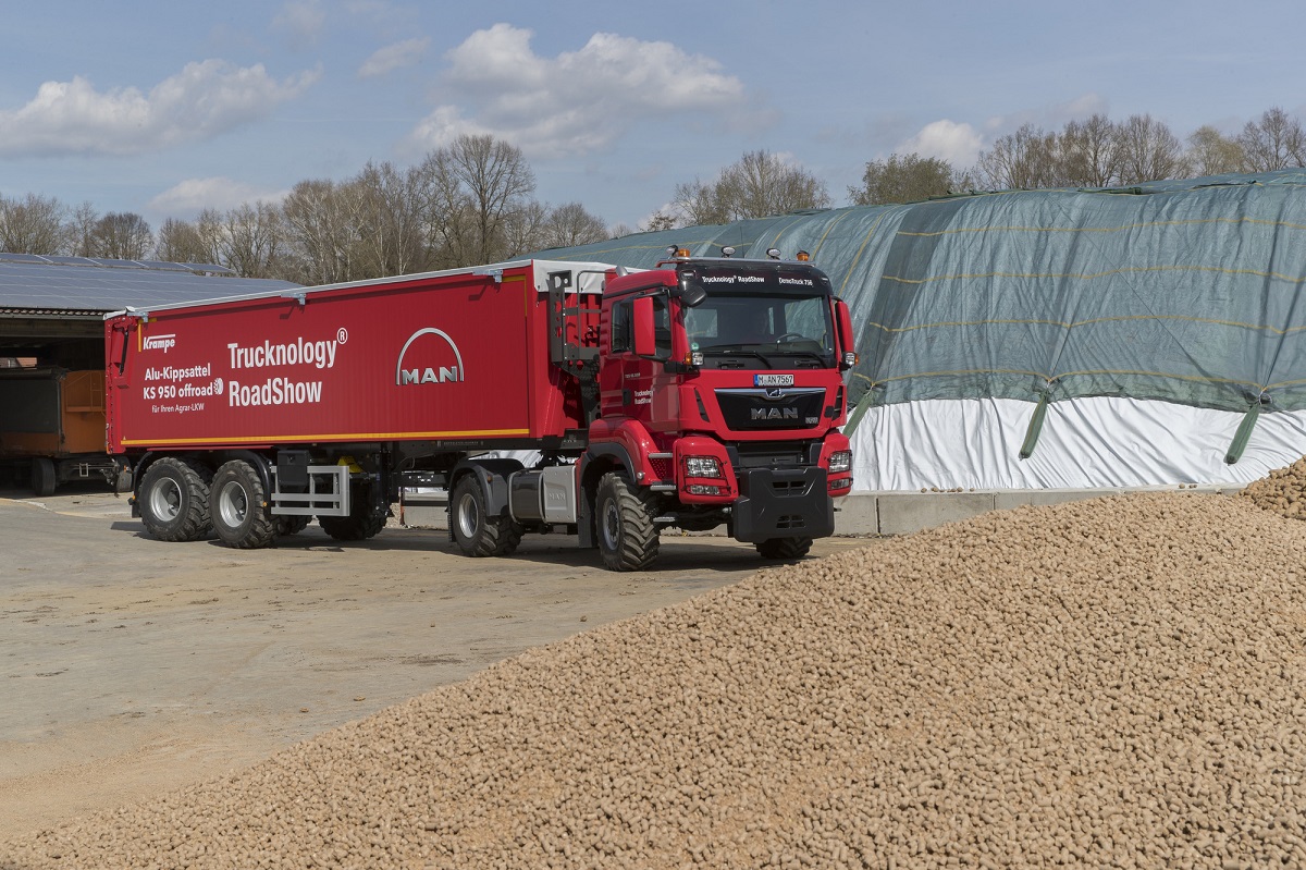 Сегодня в агросекторе наблюдается острая потребность в автопоездах полной массой 40 или 38 т. Они позволяют возить грузы по маршруту ферма – поле – склад с минимальным расходом топлива и высокой средней скоростью. Вот почему на крупнейшей международной агровыставке Agritechnica 2017, которая пройдет в Ганновере с 12 по 18 ноября, дебютирует новый седельный тягач MAN TGS 4х4.