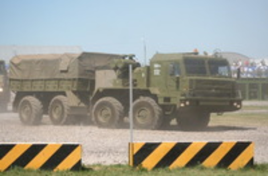 Автомобиль-тягач БАЗ-М6910Э разработанный совместно с Московским государственным техническим университетом «МАМИ» и НПП «Квант». Помимо стандартного турбодизеля ЯМЗ-8492 мощностью 500 л.с. машина оснащена 400-киловатным электромотором, который питает в свою очередь мощные аккумуляторные батареи. В нештатных ситуациях, когда закончилось дизтопливо, а также при движении в высокогорных районах (до 4650 м над уровнем моря) или с минимальным шумом, машина может передвигаться исключительно на электротяге. Для повышения маневренности поворотными сделаны не только две первых оси автомобиля, но и одна последняя, которая на малых скоростях поворачиваются в сторону противоложную передним колесам. Снаряженная масса автомобиля – 19 т. Грузоподъемность – 21 т. Максимальаня скорость – 80 км/ч. Запас хода по контрольному расходу топлива составляет 1000 км.