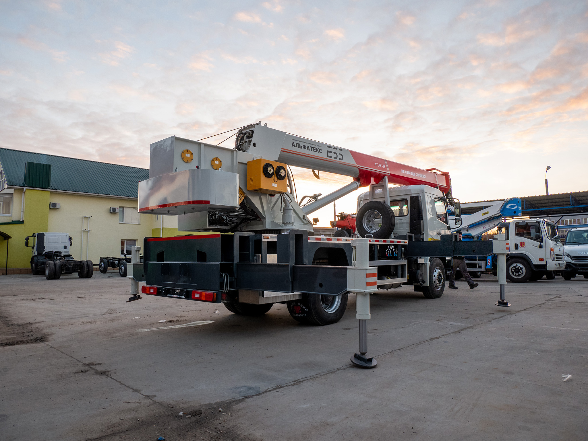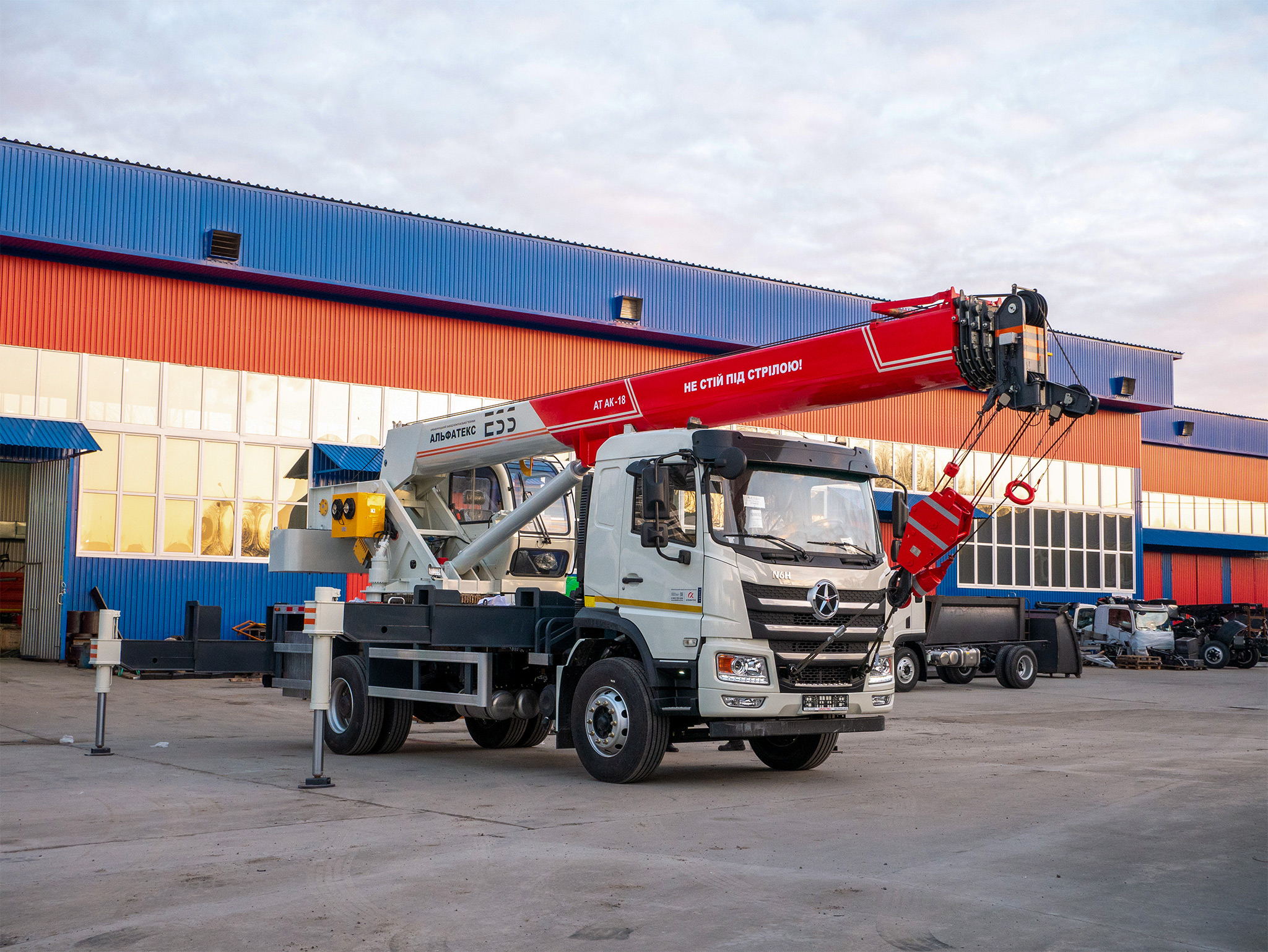Кременчугский завод коммунальной техники «Альфатекс» поставил заказчику в Черкасскую область свой новейший продукт – автокран АТ АК-18 на шасси Dayun CGC1210. Он имеет грузоподъемность 18 т и оснащен пятисекционной стрелой с максимальной высотой подъема 36,6 м. Cтрела может вращаться на 360 град. со скоростью 2,3 об/мин. Устойчивость в работе обеспечивают аутригеры площадью 5,4 х 6,5 м.