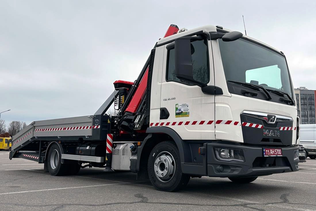 Завод спецтехники «Техкомплект» поставил заказчику в Одесскую область эвакуатор TK-TGL-EVA, изготовленный на среднетоннажном шасси MAN TGL 12.190. На нем установлена грузовая платформа собственного производства, длиной 5000 мм и шириной 2300 мм, оснащенная откидными бортами по бокам и сзади. Эвакуатор может перевозить автомобили массой до 5,5 т.