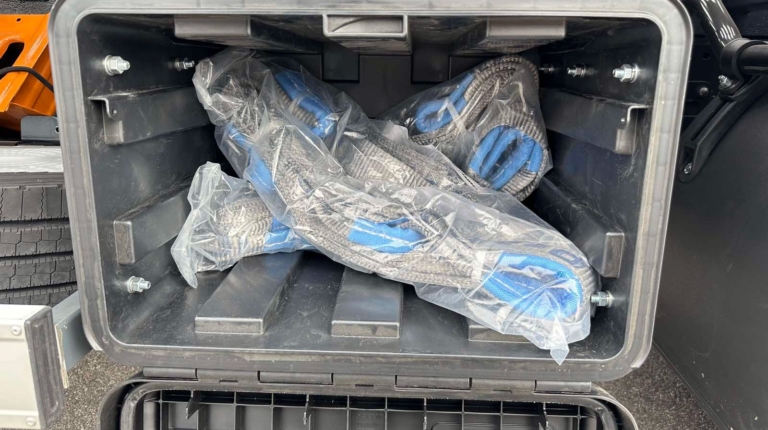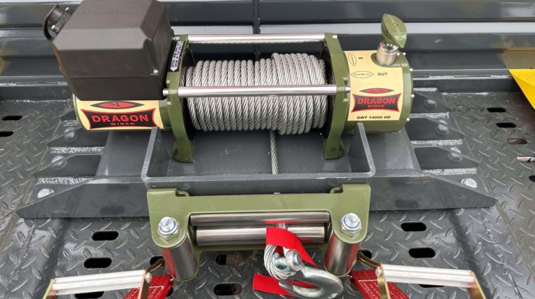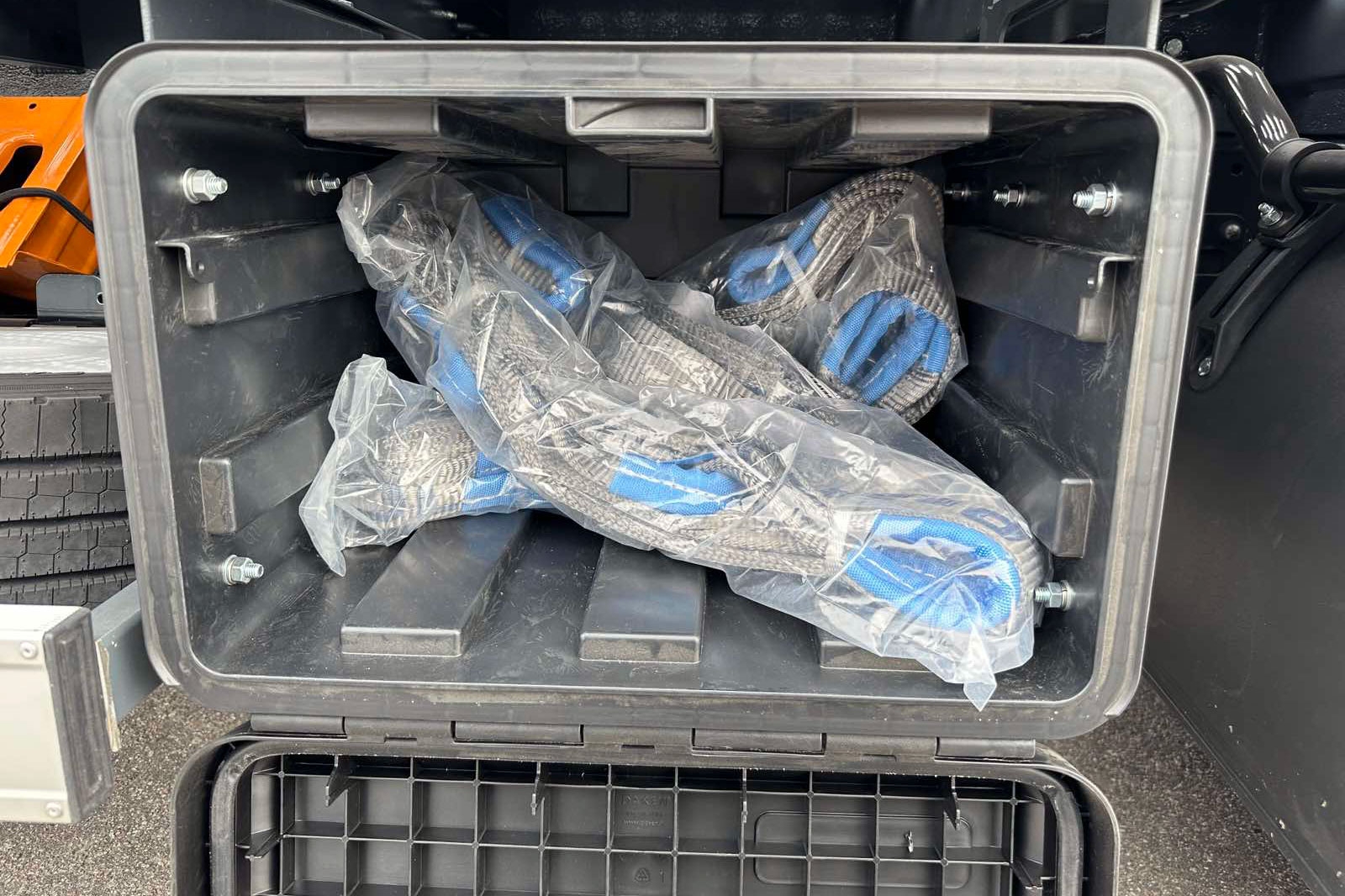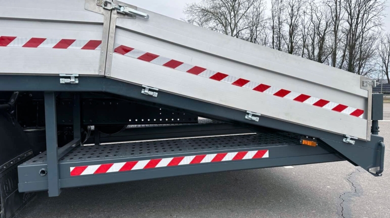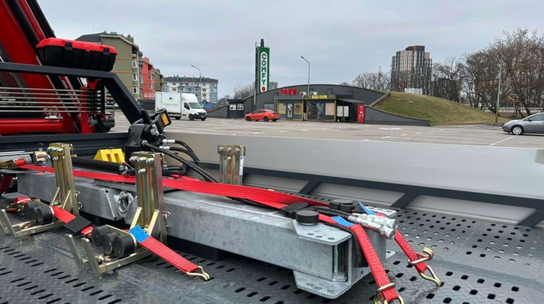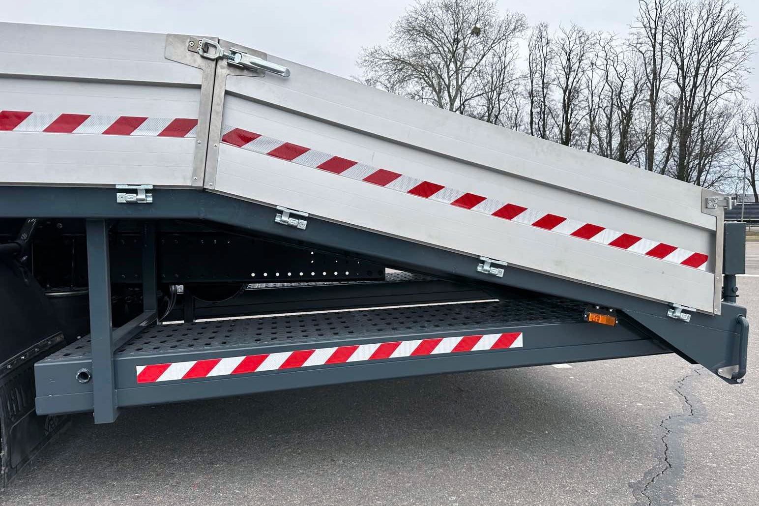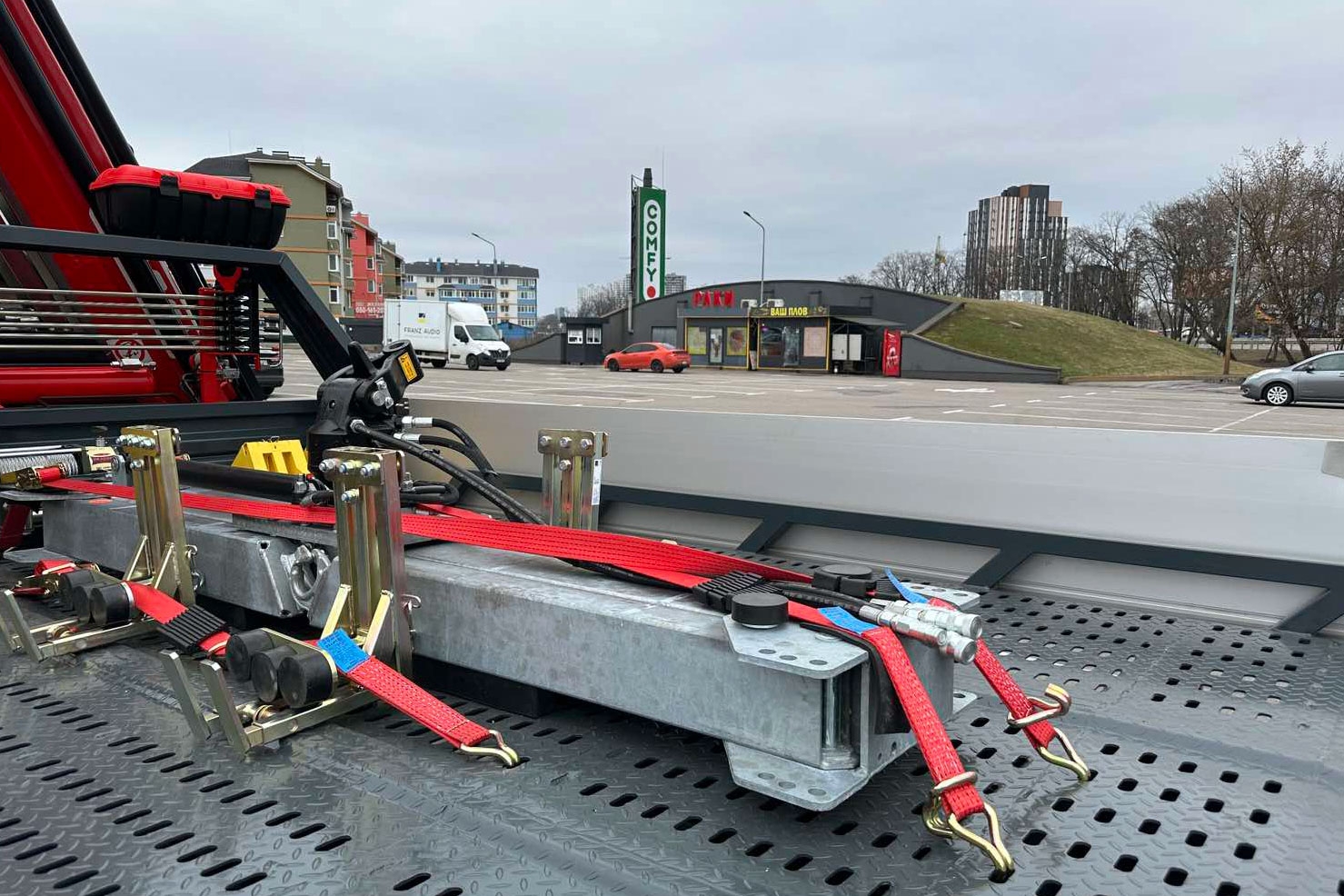 В отличие от ранее изготовленной модели на таком же шасси, здесь погрузка-выгрузка может осуществляться двумя способами. К электрической лебедке Dragon Winch с тяговым усилием 6 т добавился итальянский кран-манипулятор с грузовым моментом 12 тм. КМУ оснащена трехсеционной шарнирно-сочлененной Z-образной стрелой, способной поднимать грузы до 5,5 т. Максимальный вылет составляет 10 м, а высота подъема – 11 м.