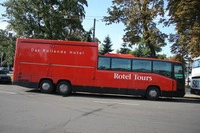 Прибывший в Украину автобус-отель принадлежит известному немецкому туроператору Rotel, который осуществляет автобусные экскурсии в 50 стран мира: от Европы до Африки и от Америки до Австралии. Уникальность данных путешествий в том, что туристы не привязаны к стационарной гостинице, а потому могут заезжать в самые удаленные и экзотические уголки мира, не обделяя себя комфортом. Продолжительность путешествия по той или иной стране обычно длится две-три недели и стоит порядка двух-пяти тысяч евро.