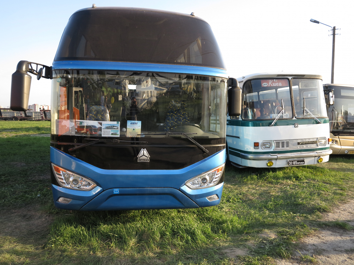 На проходившем нынешней весной Техническом фестивале в Киеве был презентовал 11-метровый туристический автобус Howo Sinotruk модели JK6117H5A. Машина, представленная компанией AVM Truck & Bus Ukraine, отличается запоминающимся дизайном с большими раскосыми фарами и наклонным лобовым стеклом а-ля Neoplan.