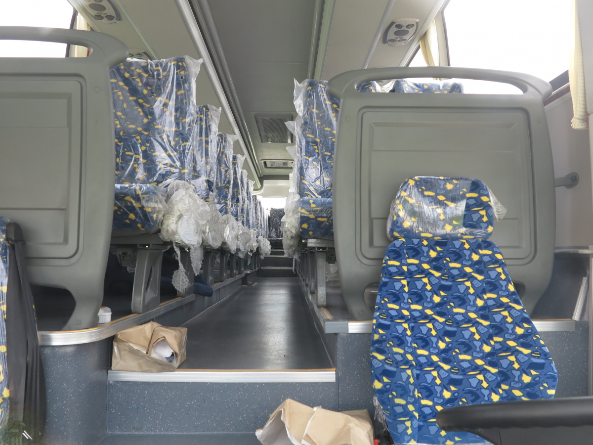 Кстати, сходство с именитыми автобусами Neoplan не случайно. В корме у модели JK6117H5A расположен 6,87-литровый турбодизель MC07.33-50 (лицензия MAN) стандарта Евро 5, мощностью 330 л. с. С ним агрегатируется механическая, 6-ступенчатая коробка передач Allison TR6.