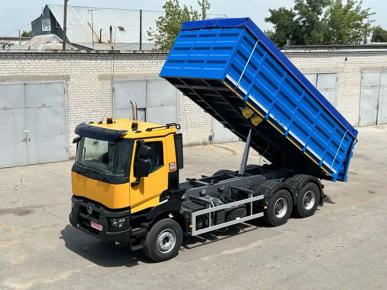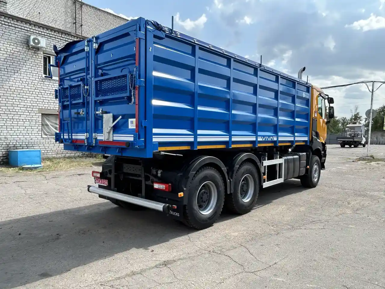 Завод спецтехники VIVA из Кременчуга выпустил отличного помощника для отечественных аграриев – зерновоз на шасси Renault Trucks семейства K. Машина колесной формулы 6х4 оснащена 12,7-литровым турбодизелем в 449 л. с., работающим в паре с автоматической коробкой передач. Грузоподъемность самосвала достигает 28 т и не случайно здесь установлены усиленные задние мосты, рассчитанные на нагрузку в 35 т.