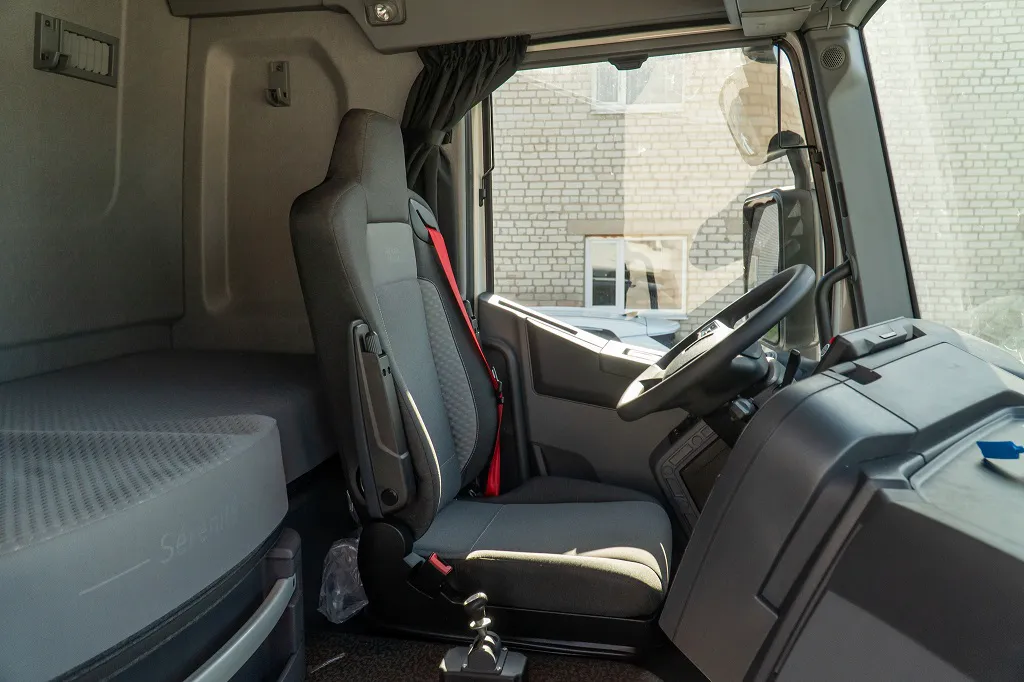Шасси Renault Truсks семейства K оснащено комфортабельной кабиной со спальным местом. На машине установлен 12,8-литровый турбодизель мощностью 480 л. с. Машина подготовлена для тяжелых условий работы, о чем свидетельствуют мощный трехсекционный бампер с нижней защитой двигателя, решетки на фарах и гибкие подножки, не боящиеся встречи с препятствиями.