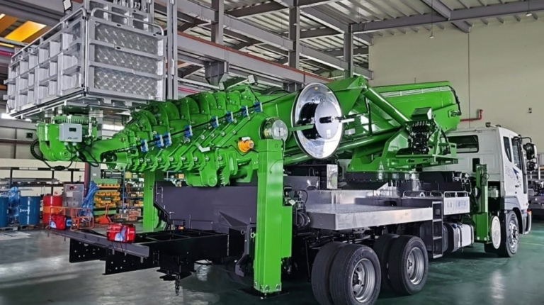 Такие автовышки довольно трудоемки в производстве, а потому от момента заказа до поставки клиенту требуется от 6 до 12 месяцев. Однако нынешней осенью в Украину прибудет уже собранная модель – Hansin HS 560 – с высотой подъема 55 м и максимальным вылетом 25 – 30 м. Грузоподъемность рабочей платформы варьируется от 100 до 500 кг в зависимости от вылета.