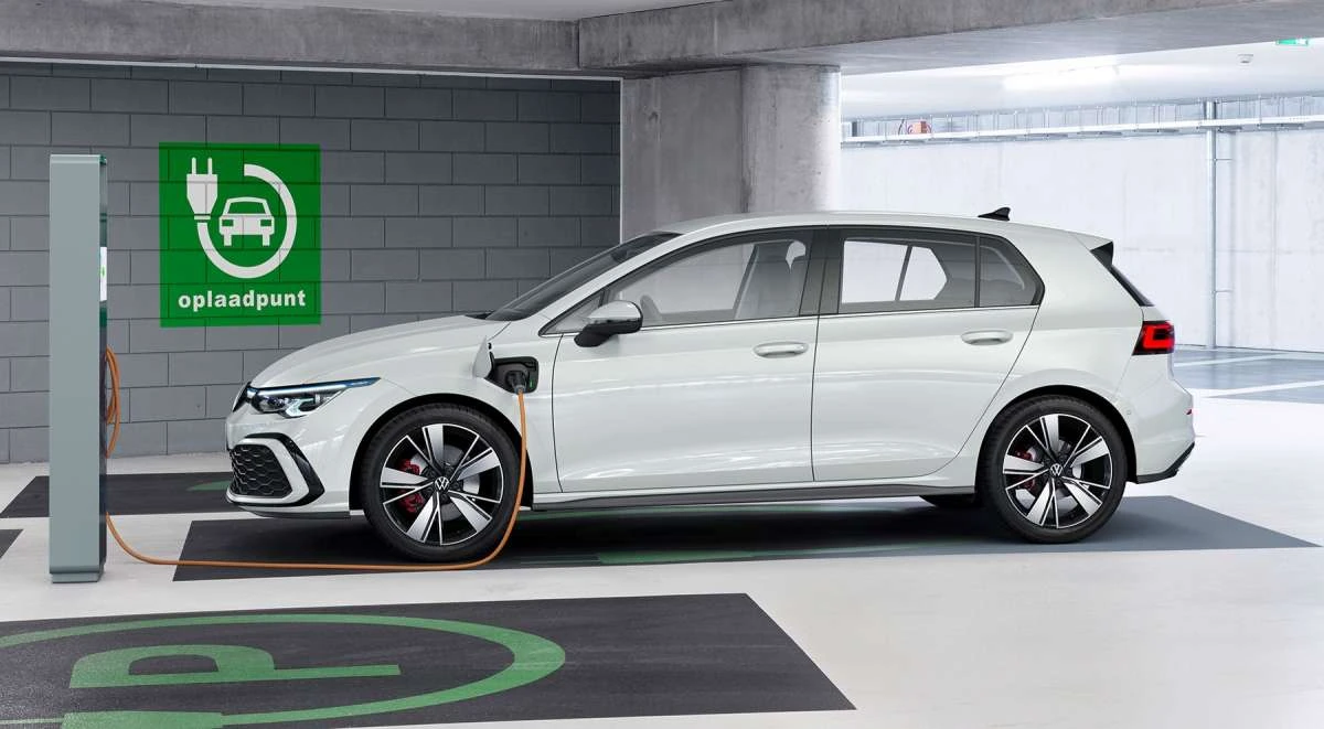 Что касается других фото, то на них Гольф представлен со всех ракурсов. Причем, кроме обычной версии, засветилась и плагин-гибридная модификация (её нетрудно опознать по зарядке у терминала).