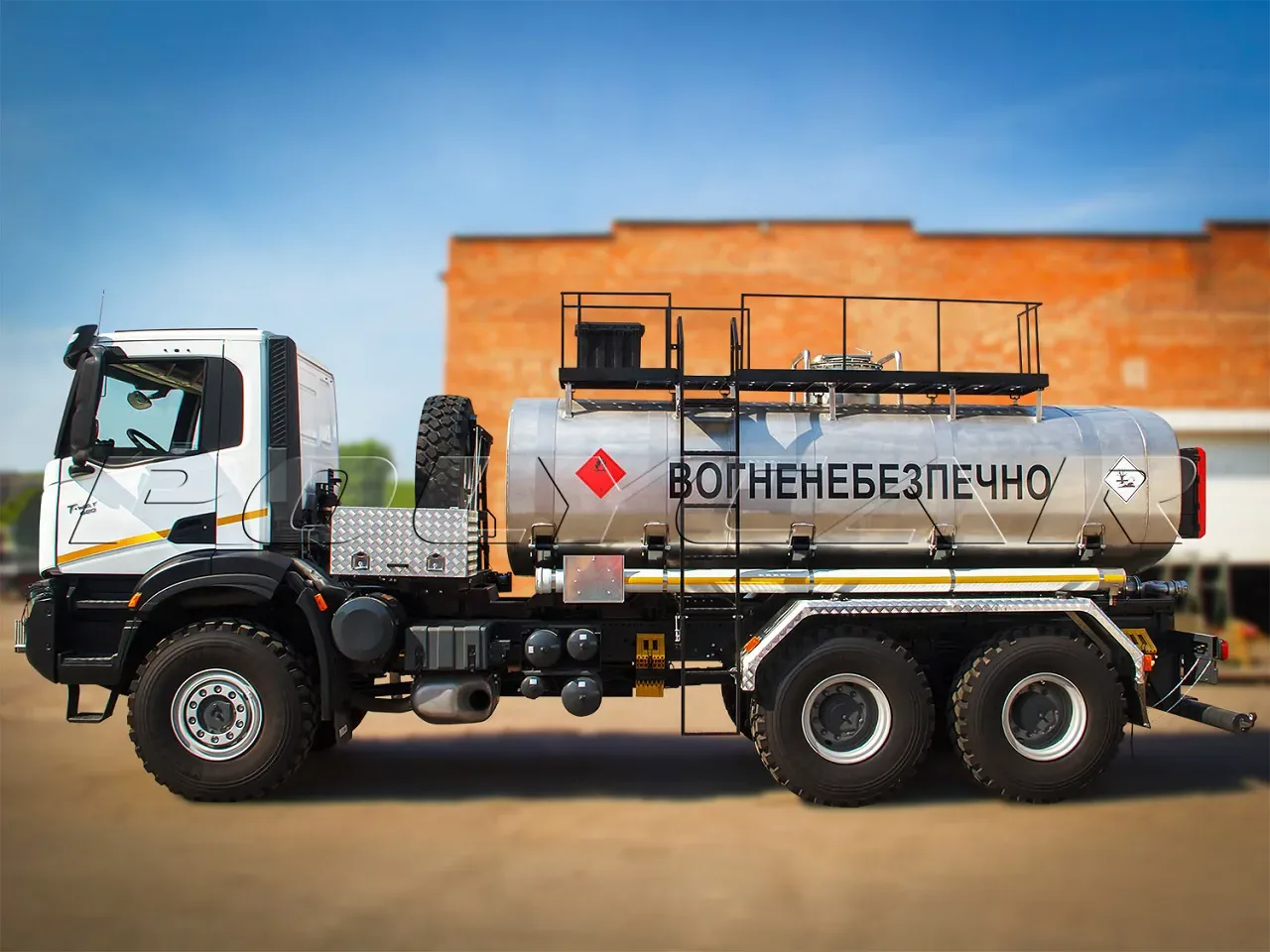 Цистерна выполнена односекционной и оборудована парой волногасителей внутри. Она имеет форму «чемодана», что позволило понизить центр тяжести, а значит улучшить устойчивость многотонного автомобиля.