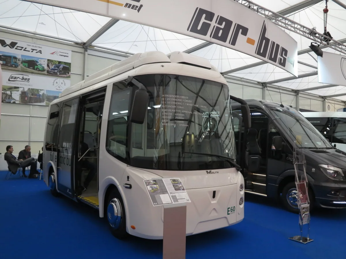 Маршрутка на электротяге Wolta E60, презентованная на Busworld Europe Kortrijk 2017, получила модерный по дизайну кузов – с округлой носовой частью - от испанского ателье Сars.bus.net.