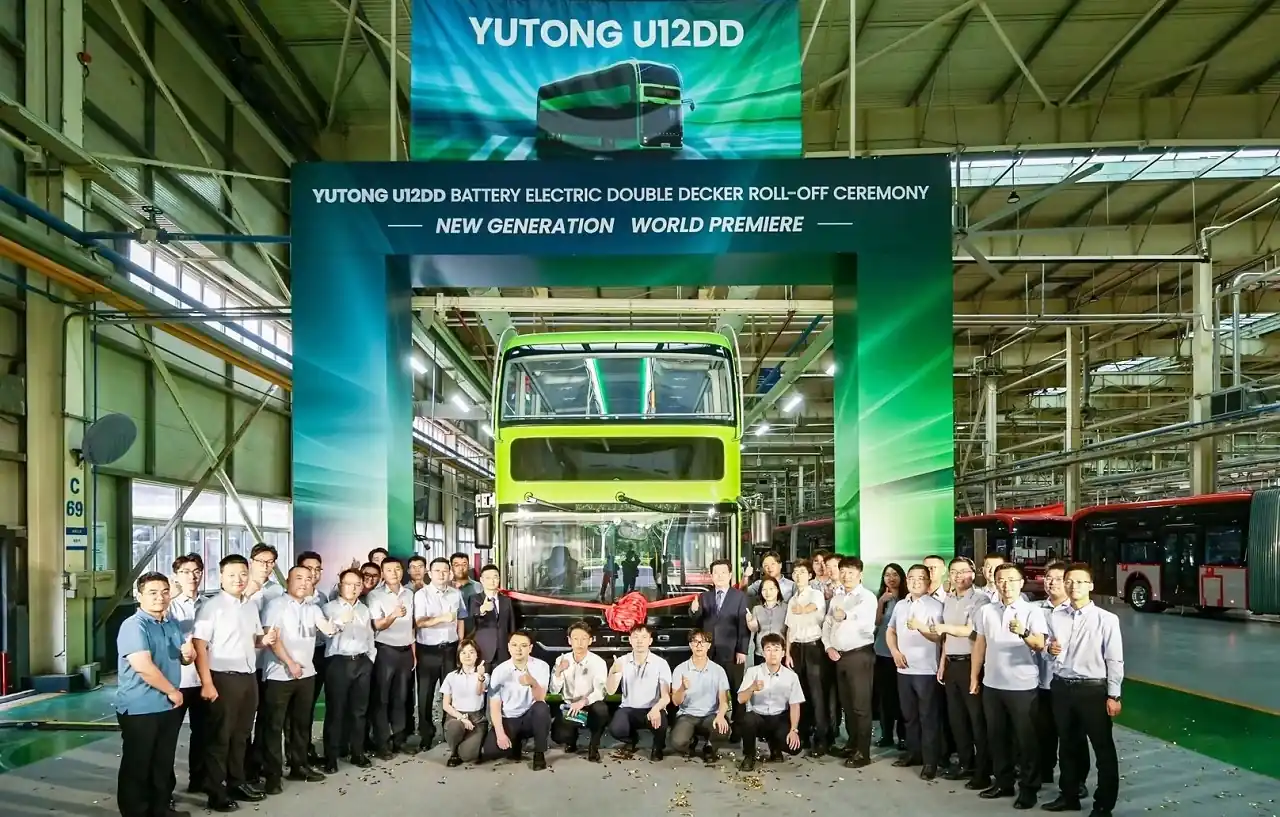 На заводе Yutong в городе Чжэнчжоу 6 мая прошла мировая премьера двухэтажного городского электробуса U12DD. Машина получила полностью алюминиевый кузов, который легче стального на 1300 кг. И не случайно гарантия на коррозийную стойкость составляет 20 лет или 2 млн км. Салон рассчитан на перевозку 120 пассажиров и оборудован местами для людей с инвалидностью. В комплектацию входит кондиционер производительностью 52000 Ккал/ч.