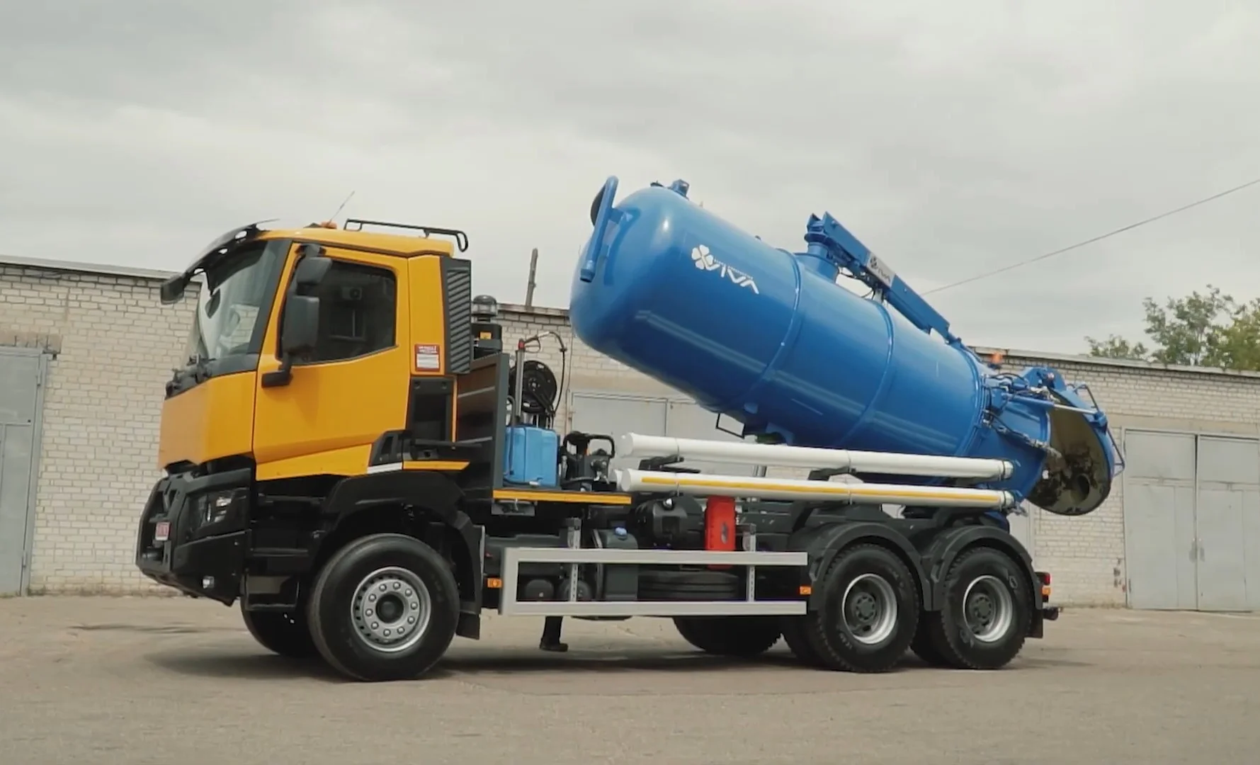 В комплектацию также входит мойка высокого давления – с баком для воды на 200 л и 15-метровым шлангом, что позволяет эффективно очищать цистерну как снаружи, так и внутри. Шасси Renault K440 колесной формулы 6х4 укомплектовано турбодизелем DXi13 мощностью 449 л. с., который работает в паре с автоматизированной коробкой передач.
