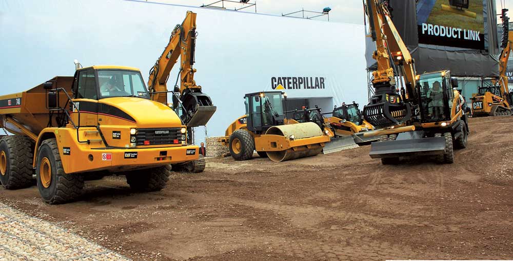 Особо отличилась компания Сaterpillar, которая устроила эффектное шоу. На одну из центральных площадей выставочного комплекса завезли целые горы песка, и на этом импровизированном полигоне машины фирмы показывали себя в деле.