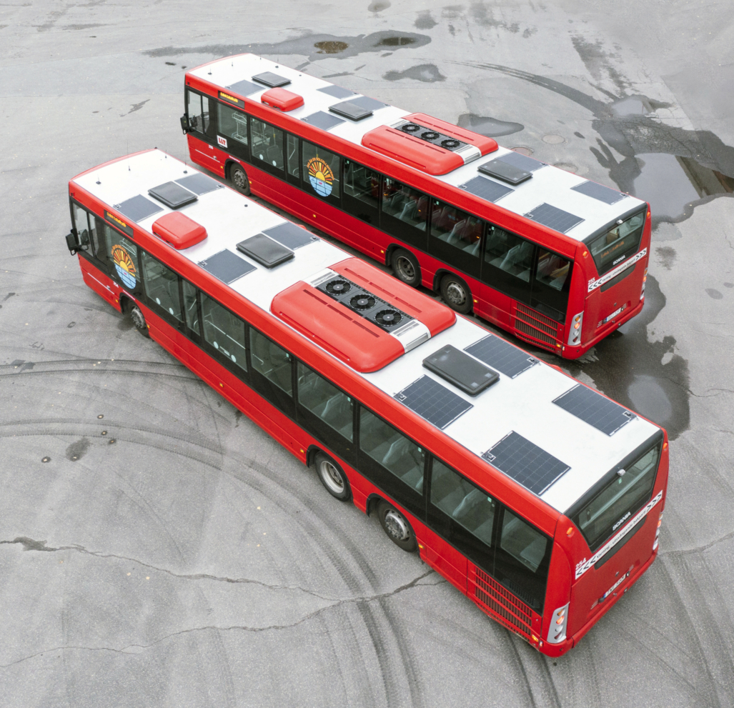 Solar Bus Kit имеет максимальную выходную мощность 1 кВт и позволяет питать системы вентиляции, отопления и кондиционирования, Таким образом один автобус экономит в год до 1100 л топлива и не выбрасывает в атмосферу 2,9 т СО2. В перспективе солнечные батареи смогут увеличить запас хода электробусов. Окупаемость солнечных батарей составляет 3 – 4 года. Таким образом, шведский оператор LLT ведет активную подготовку к переводу 50% своего парка на электробусы к 2030 году.