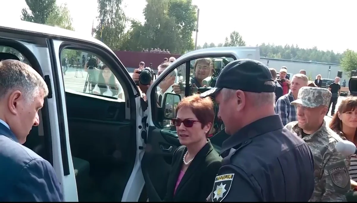 На торжественной церемонии выпуска спецназовцев и передачи им новых автомобилей присутствовал Министр МВД Арсен Аваков, глава Национальной полиции Сергей Князев и Чрезвычайный и Уполномоченный посол США в Украине Мари Иванович.