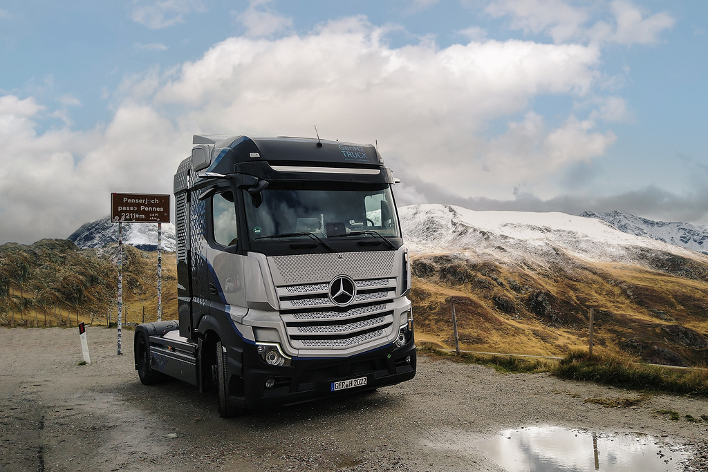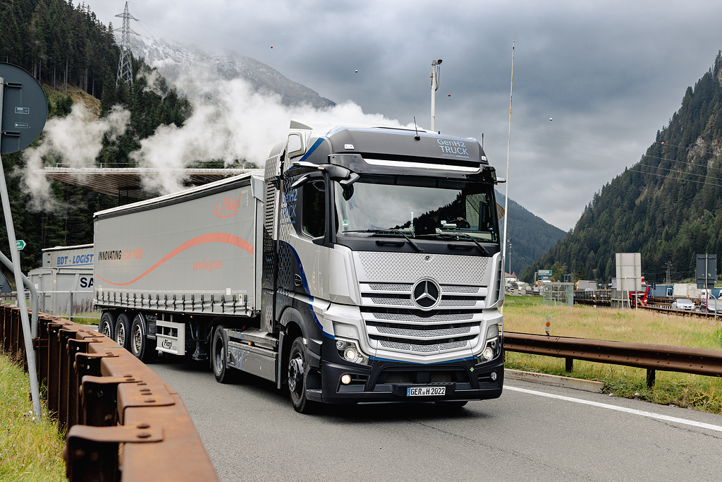 Завершились первые ходовые испытания водородного седельного тягача Mercedes-Benz GenH2 Truck по высокогорным районам. В течение недели тягач в составе груженого автопоезда несколько раз преодолевал перевал Бреннер на маршруте длиной 120 км.