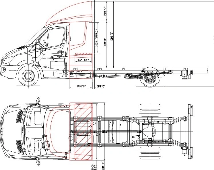 Спальная полка шириной 700 мм сделана откидной, поэтому капсулу можно использовать и как дополнительный багажный отсек. В итоге габариты кабины со спальником такие: длина 2275 мм (от передней оси до задней стенки), ширина 2060 мм и высота – 2985 мм (со спойлером). Что же касается внутренних размером, то непосредственная капсулы составляют: длина (глубина) - 820 мм, ширина – 2000 мм и высота 1650 мм (высота от полки до потолка – 1000 мм).